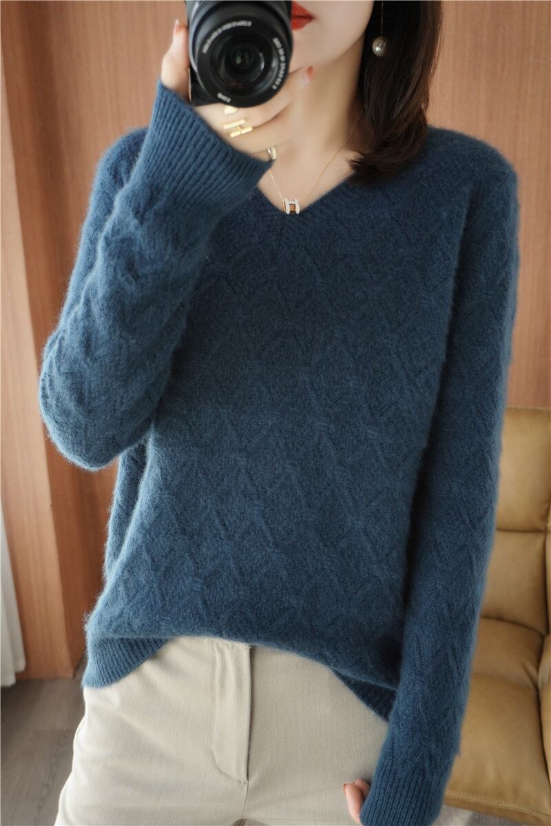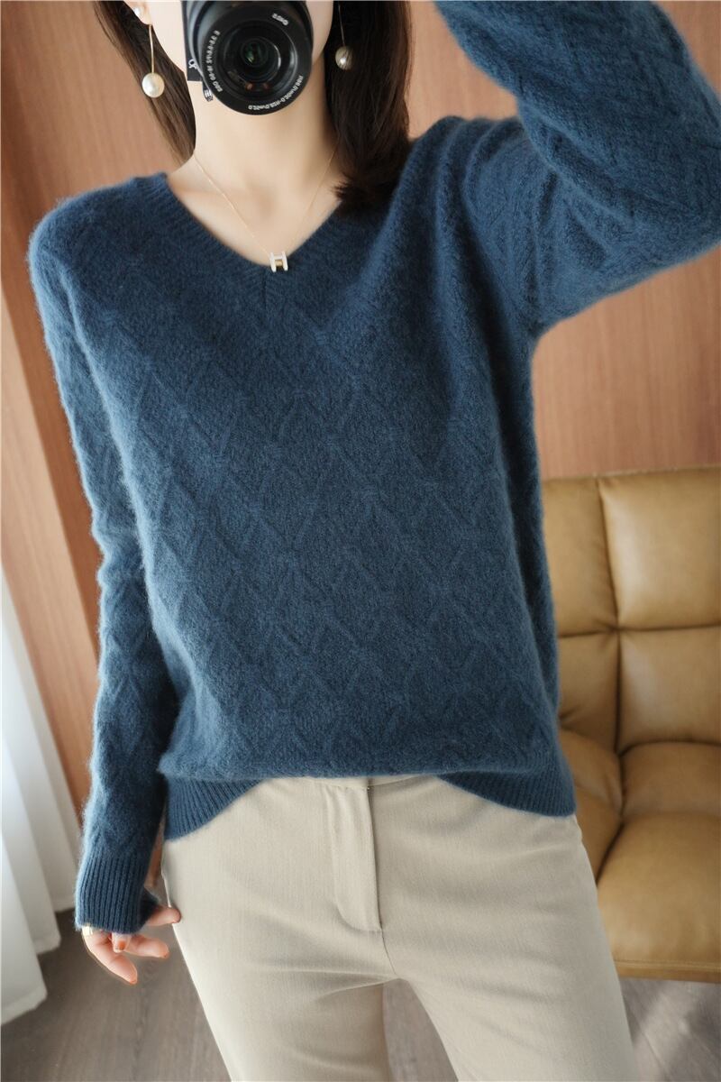 Vネックセーターは、長い年月を経ても変わらない定番的なデザインと色使いが魅力のアイテムです。ホワイト、ブルー、ピンクの3色展開で、洗練された雰囲気を演出できるアイテムです。細身のシルエットが女性らしい印象を与え、ストレートなラインがスマートな印象を醸し出します。シンプルでありながら上品さを持ち合わせているから、オフィスカジュアルからデートまで幅広いシーンに対応できる一枚です。おしゃれにセンスをアピールしたい大人女性には最適です。ゆったりとした腕回りも取り入れたロングセーターは、寒い季節にぴったりのアイテムです。このセーターでさらに華やかな毎日を過ごしてみませんか?