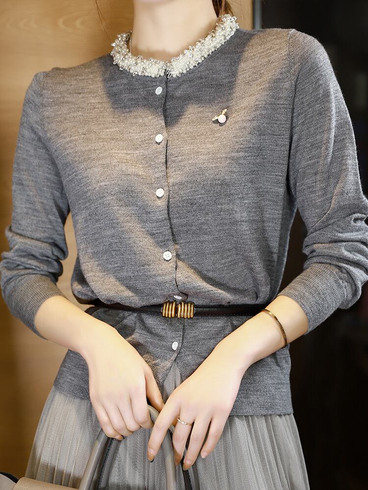 パール付きカーディガン グレー トップス ニットソー セーター カーディガン スリム 細身 ストレート スマート かわいい きれいめ シンプル 大人 上品 おしゃれ 大人可愛い 大人女子 こなれ感 ラフ クール モード系 セクシー エレガント 無地 春 秋 冬 誕生日 謝恩会 二次会 ハロウィン クリスマス バレンタイン レディース 女性用 学生 通学 デート お出かけ 女子会 お泊まり 休日 アウトドア パーティー イベント リゾート 旅行 ホテル レストラン 着回し 普段使い 韓国 韓国系 オルチャン