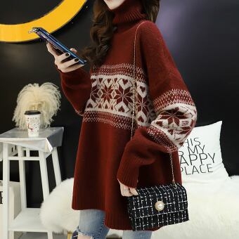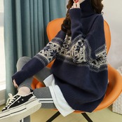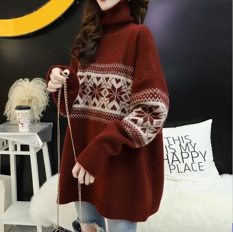 タートルネックセーター トップス ニット カジュアル ブルー 青 レッド 赤 ミディアム丈 袖あり 長袖 タートルネック ストレート ワイド 大人女子 大人 上品 おしゃれ デイリーウェア レトロ レトロ風 こなれ感 ラフ ルーズ シルエット キュート かわいい 女子 個性的 デザイン 主役級 存在感 柄 雪の結晶 秋 オータム 冬 ウインター 20代 10代 30代 レディース 女性用 デート お出かけ 女子会 着回し 普段使い L XL 2XL 大きいサイズ 3XL 4XL