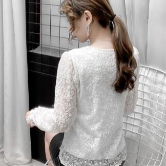 このレースシャツは、レトロな雰囲気が魅力的な大人女子向けのアイテムです。上品さと可愛らしさが融合した、デザイン性の高い一枚。白の無地でシンプルながらも、透け感のあるシアーな生地とレース素材の繊細なデザインが、存在感を放ちます。