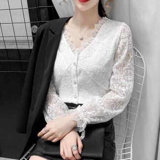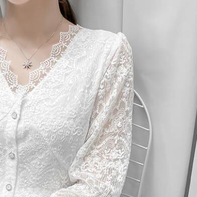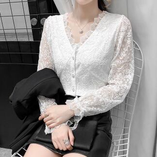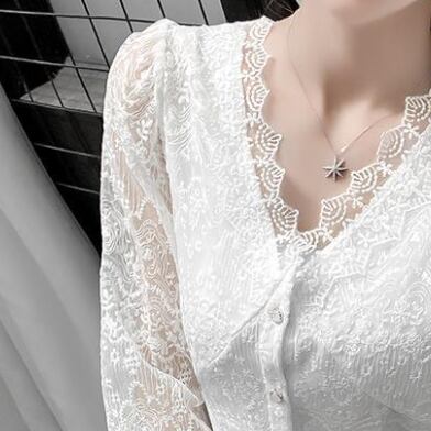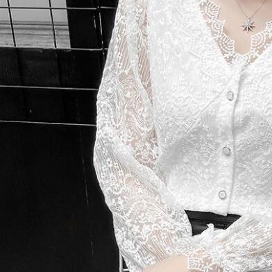 レースシャツ トップス ブラウス クラシック ホワイト 白 レギュラー丈 袖あり 長袖 Vネック スリム 細身 タイト シングルブレスト ボタン 透け感 シアー レース 大人女子 大人 上品 おしゃれ きれいめ シンプル エレガント レトロ レトロ風 こなれ感 ラフ キュート かわいい 女子 個性的 デザイン 主役級 存在感 無地 春 スプリング 秋 オータム 20代 10代 レディース 女性用 デート お出かけ 女子会 L XL 2XL 大きいサイズ 3XL 4XL