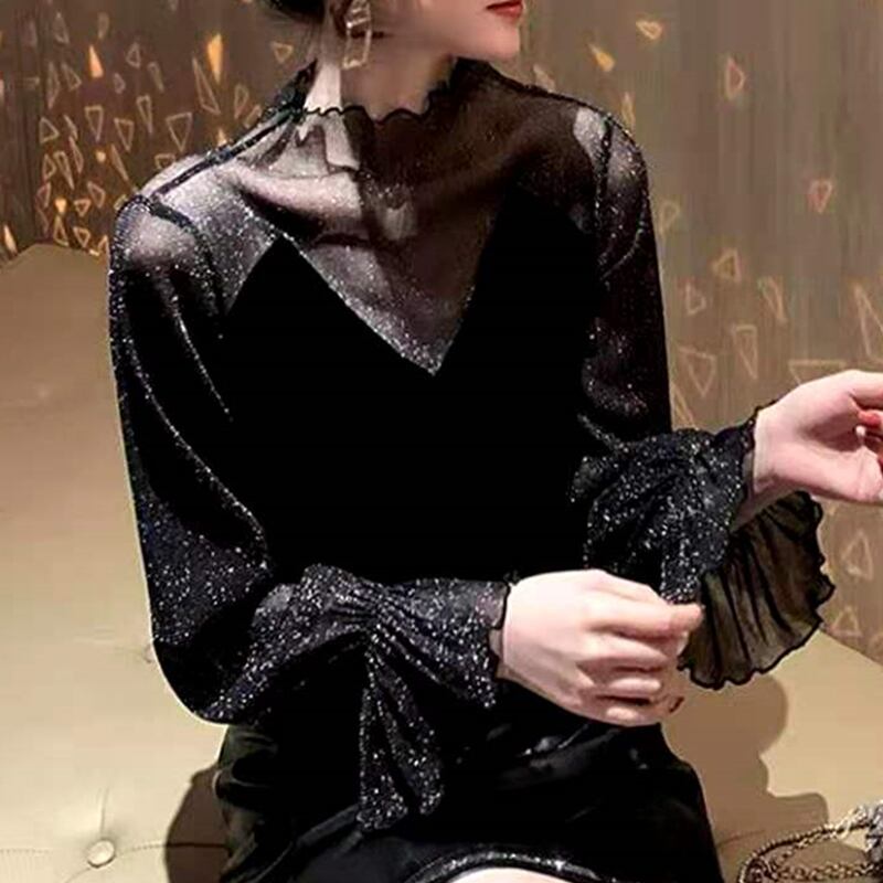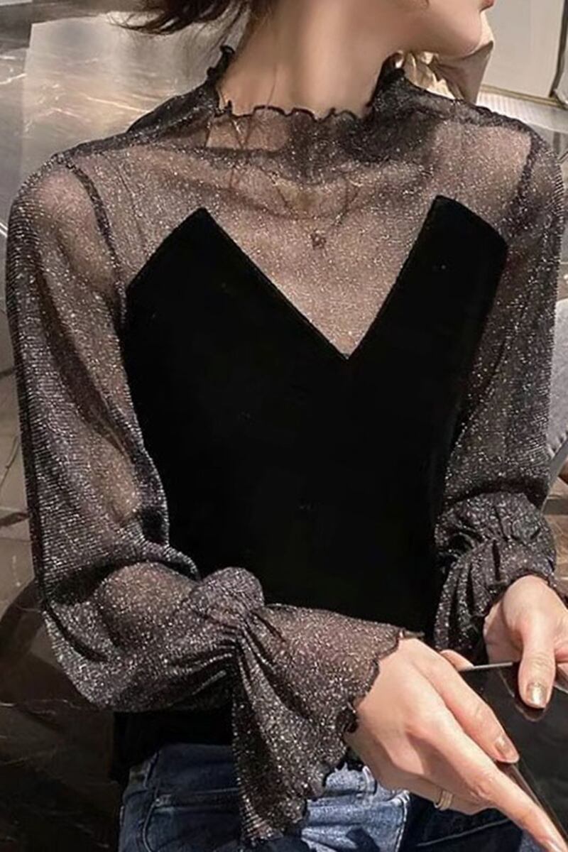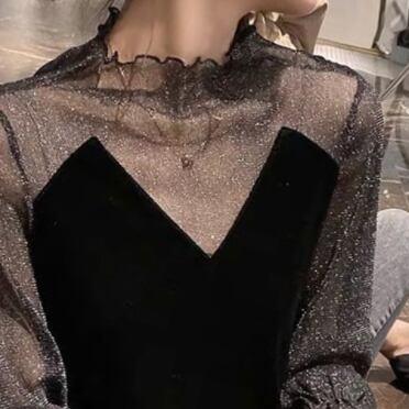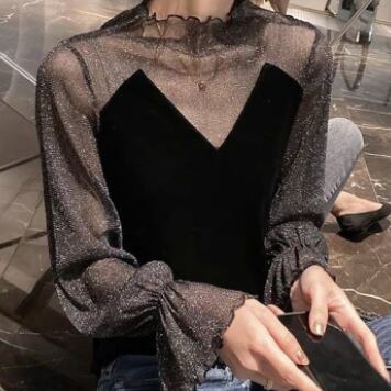 シースルーカットソー シャツ ブラウス ブラック 黒 レギュラー丈 袖あり 長袖 ハイネック スリム 細身 タイト 透け感 シアー レース 大人女子 大人 上品 おしゃれ エレガント レトロ レトロ風 こなれ感 ラフ 個性的 デザイン 主役級 存在感 無地 秋 冬 20代 10代 30代 レディース 女性用 デート お出かけ 女子会 イベント リゾート 旅行 パーティ 着回し 普段使い ファッション コーデ L XL 2XL 大きいサイズ 3XL 4XL 大人カラー