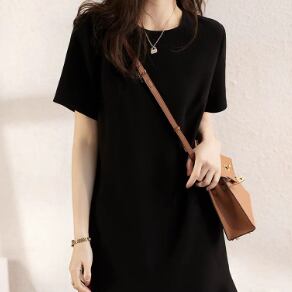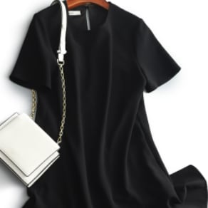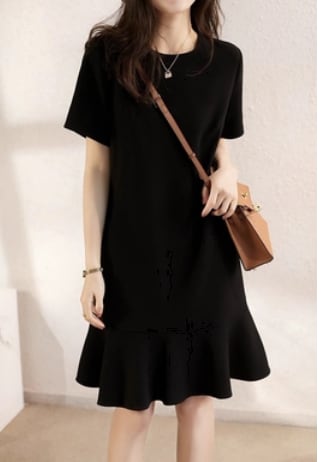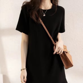 シンプルな半袖のAライン膝丈ワンピースです。