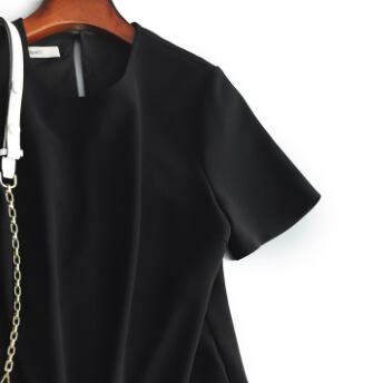 ブラックAライン膝丈ワンピース ワンピース ひざ丈 半袖 ラウンドネック フレア Aライン フリル かわいい 大人可愛い きれいめ シンプル 大人 上品 おしゃれ かっこいい 大人可愛い 大人女子 無地 春 夏 秋 入学式 入園式 卒業式 卒園式 結婚式 二次会 披露宴 10代 20代 30代 40代 50代 レディース ママ 女の子 オフィス ビジネス OL 通勤 通学 デート お出かけ 女子会 休日 ホテル ガーデン レストラン 着回し ファッション コーデ スタイル 定番 S M L XL