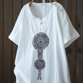 エスニック&アジアンな雰囲気の半袖コットンTシャツです。