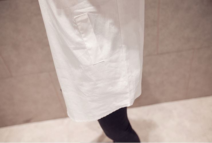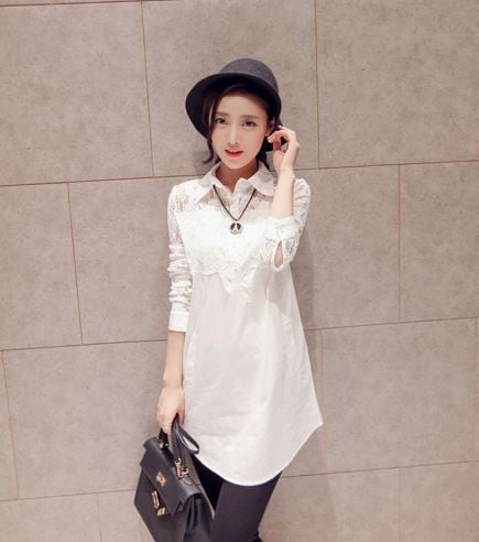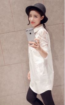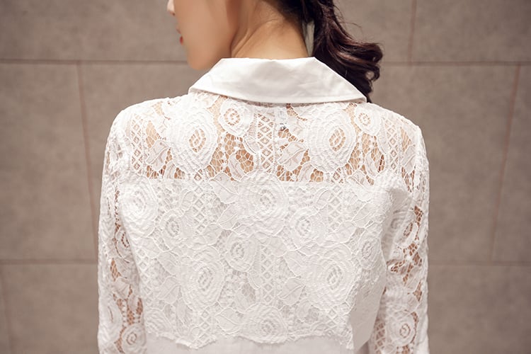 上品でフェミニンな雰囲気が漂うレースシャツブラウスが登場しました。白い綿地にレースを重ねたデザインで、袖や襟もレースの華やかさが魅力的です。襟元にはポロカラーがあり、細身のシルエットでスタイリッシュに見せてくれます。綿素材なので通気性がよく、薄手で軽いのも魅力的。長めのミディアム丈なので、体型カバーにもなります。