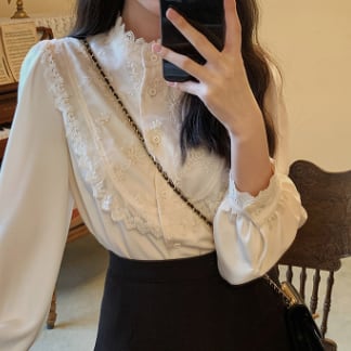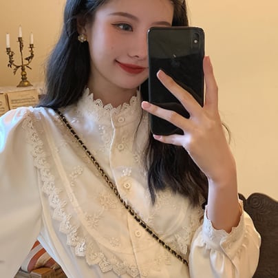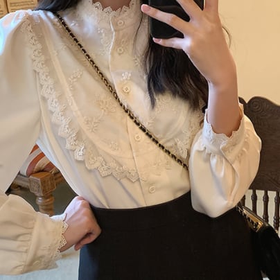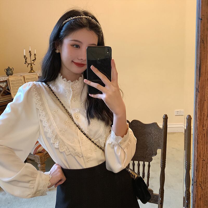 レーストップス トップス ブラウス 白トップス 長袖 ハイネック 刺繍 かわいい 大人可愛い きれいめ 大人 上品 おしゃれ お洒落 レトロ 大人可愛い 大人女子 ラブリー キュート ガーリー エレガント 主役級 存在感 春 秋 冬 入学式 入園式 卒業式 卒園式 10代 20代 30代 女性用 ママ 女の子 学生 デート お出かけ 女子会 お泊まり 休日 着回し 普段使い 韓国 韓国系 オルチャン ファッション コーデ スタイル モテ 新作 定番 送料無料 トレンド 流行 インスタ映え インポート 海外