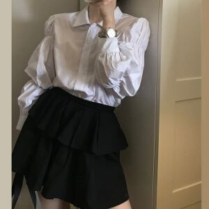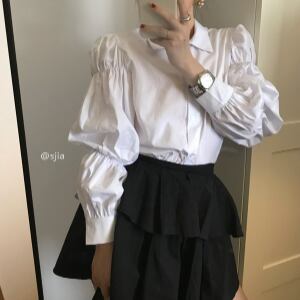 デザイン性シャツ トップス シャツ ボリューム袖 パフスリーブ かわいい 大人可愛い きれいめ おしゃれ お洒落 大人可愛い 大人女子 ラブリー キュート ガーリー 個性的 主役級 存在感 無地 春 秋 冬 10代 20代 30代 レディース 女性用 ママ 女の子 デート お出かけ 女子会 お泊まり 休日 着回し 韓国 韓国系 オルチャン ファッション コーデ スタイル モテ 新作 定番 送料無料 トレンド 流行 インスタ映え インポート 海外 人気 大人カジュアル 女子力 レイヤード 合わせやすい