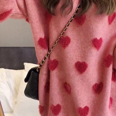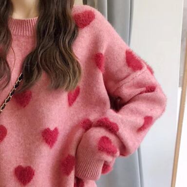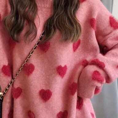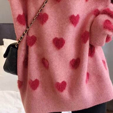 ホワイトとピンクの可愛いハート柄がポイントの、トレンド感あふれるセーターです。細身のシルエットで、上品かつモードな雰囲気が漂います。シンプルながらもこだわりのあるデザインで、大人女子にもぴったりのアイテムです。