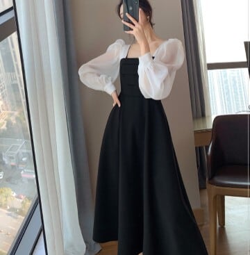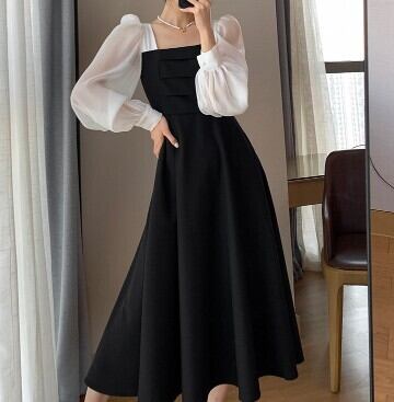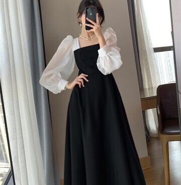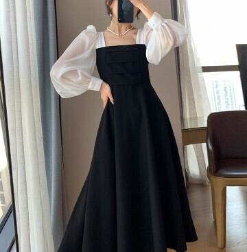 ワンピースドレス ワンピース ドレス 秋冬新作 モダン シック レトロデザイン シースルー パフスリーブ 長袖ワンピース M L XL 2XL 3XL 4XL ブラック 披露宴 二次会 披露宴 旅行 リゾート ディナー 特別な日 10代 20代 30代 40代 結婚式 ウエディングパーティー パーティー お呼ばれ 発表会 ラグジュアリーファッション 海外デザイン インポート プチプラ ランキング 大人女子 大人クール デザイン重視 メンズライク 韓国デザイン オルチャン プチプラ モテ プラスサイズ 人気