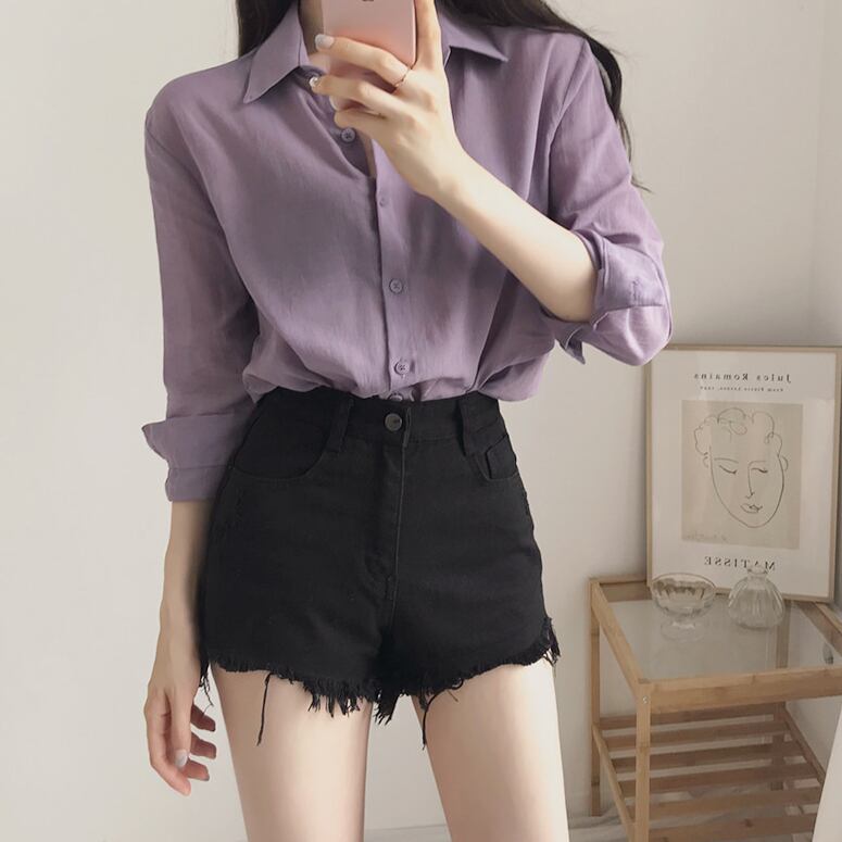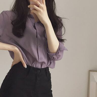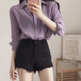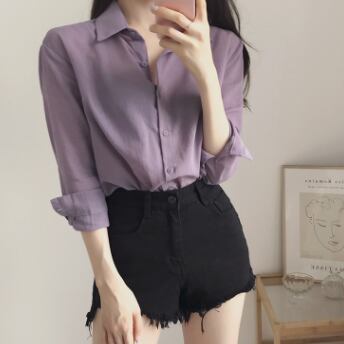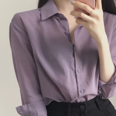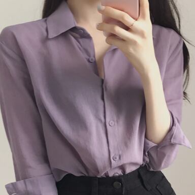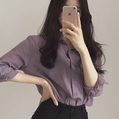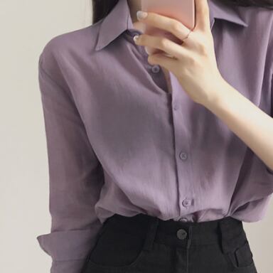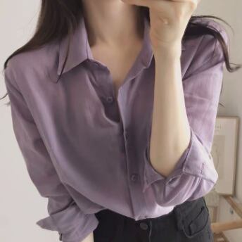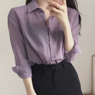 トップス シャツ 長袖 襟付き かわいい 大人可愛い おしゃれ お洒落 大人可愛い 大人女子 こなれ感 ラフ ラブリー キュート ガーリー 主役級 存在感 無地 春 秋 冬 10代 20代 30代 レディース 女性用 ママ 女の子 デート お出かけ 女子会 お泊まり 休日 着回し 普段使い 韓国 韓国系 ファッション コーデ スタイル 楽ちん モテ 新作 定番 送料無料 トレンド 流行 インスタ映え インポート 海外 人気 大人カジュアル 女子力 パープル カラーシャツ 値段重視 コスパ 合わせやすい