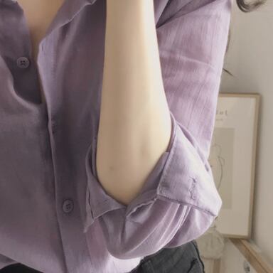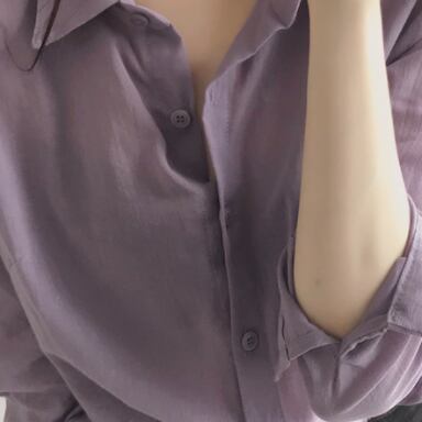 パープルが大人可愛いシャツです。