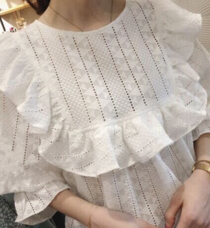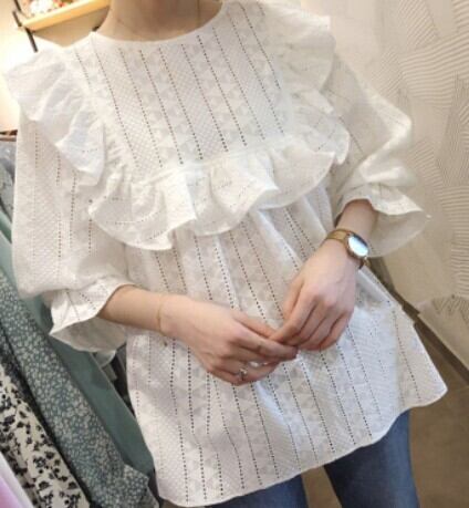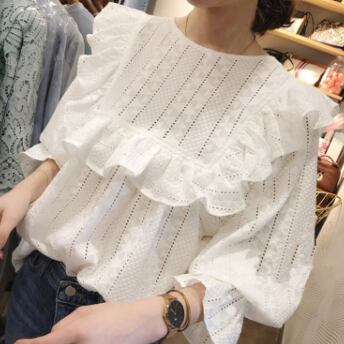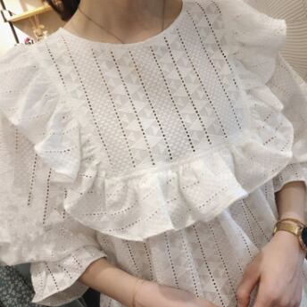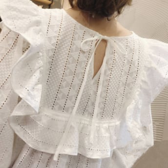 「可愛い」に抵抗がある方も安心して着用できる、大人女子にぴったりのフリルブラウス。ボリューム袖とレース刺繍が可愛らしく、ラウンドネックで大人っぽく上品な印象も与えます。白トップスは色んなスタイルに合わせることができ、これ一枚でコーディネートが完成します。ふんわりとした雰囲気のこのブラウスは、大人可愛いガーリースタイルから、女子会やデートなどの特別な日の着こなしまで幅広く対応可能です。