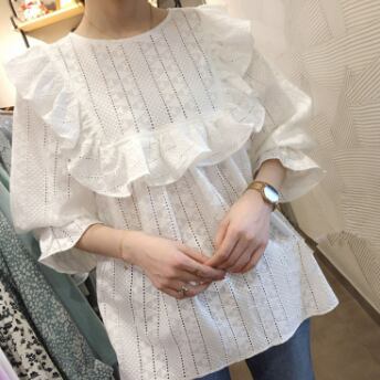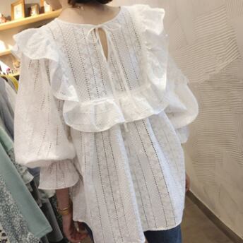 フリルブラウス トップス ブラウス チュニック 白トップス 長袖 ボリューム袖 ラウンドネック レース 刺繍 かわいい 大人可愛い おしゃれ お洒落 大人可愛い 大人女子 ラブリー キュート ガーリー 主役級 存在感 春 夏 10代 20代 30代 レディース 女性用 ママ 女の子 学生 デート お出かけ 女子会 お泊まり 休日 着回し 普段使い 韓国 韓国系 ファッション コーデ スタイル モテ 新作 定番 送料無料 トレンド 流行 インスタ映え 大きい 大きめ ビッグサイズ ゆったり ゆる インポート