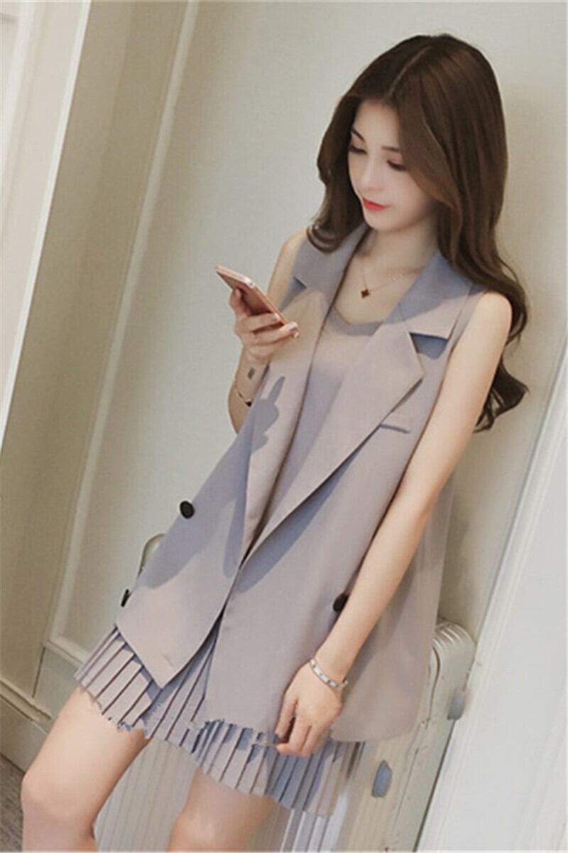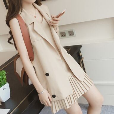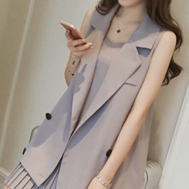 ノースリーブツーピース アウター ワンピース セットアップ ジャケット プリーツスカート ミディアム丈 ノースリーブ ノッチドラペルカラー ストレート プリーツ 切り替えデザイン 薄手 ツーピース 大人可愛い きれいめ 大人 上品 おしゃれ かっこいい 大人女子 こなれ感 個性的 クール モード系 セクシー エレガント モダン 主役級 フォーマル 無地 春 10代 20代 30代 オフィス OL 通勤 学生 通学 デート お出かけ 女子会 休日 パーティー リゾート ホテル ガーデン レストラン 着回し