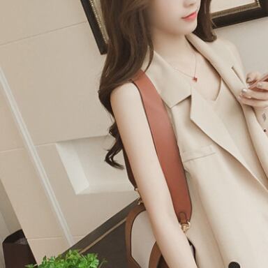 ノースリーブジャケットとサスペンダーワンピースのツーピーススーツです。