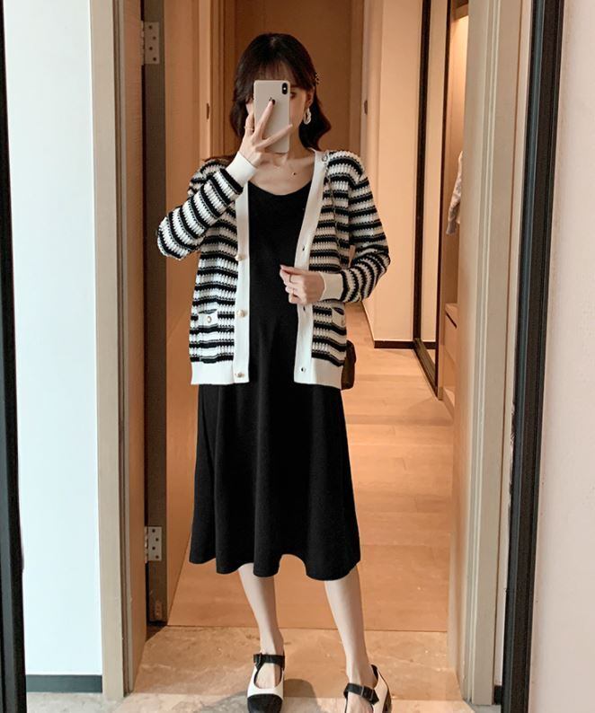 ツーピースドレス ワンピース セットアップ カーディガン ミディアム丈 袖あり 長袖 ニット 薄手 ツーピース 大人可愛い きれいめ 大人 おしゃれ 大人女子 こなれ感 ラブリー ルーズ 個性的 クール モード系 エレガント モダン 主役級 抜け感 ストライプ 春 秋 レディース 女性用 マタニティ お出かけ 休日 イベント リゾート 旅行 ホテル ガーデン レストラン 着回し ファッション コーデ スタイル 体系カバー トレンド 流行 インスタ映え イメチェン 好感度 イメージアップ 注目 話題