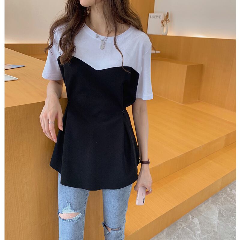 切り返しデザインTシャツ ブラック ブラウン トップス Tシャツ シャツ スリム 細身 ストレート スマート かわいい きれいめ シンプル 大人 上品 おしゃれ 大人可愛い 大人女子 こなれ感 ラフ クール モード系 セクシー エレガント 無地 春 秋 冬 誕生日 謝恩会 二次会 ハロウィン クリスマス バレンタイン レディース 女性用 学生 通学 デート お出かけ 女子会 お泊まり 休日 アウトドア パーティー イベント リゾート 旅行 ホテル レストラン 着回し 普段使い 韓国 韓国系 オルチャン