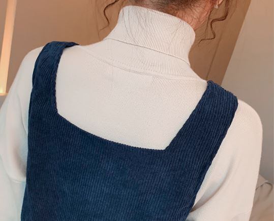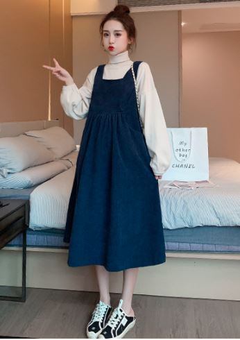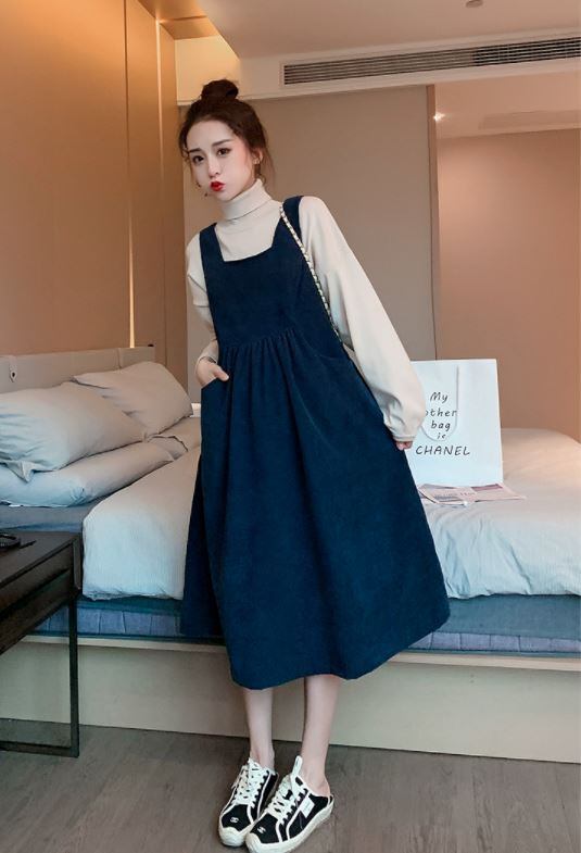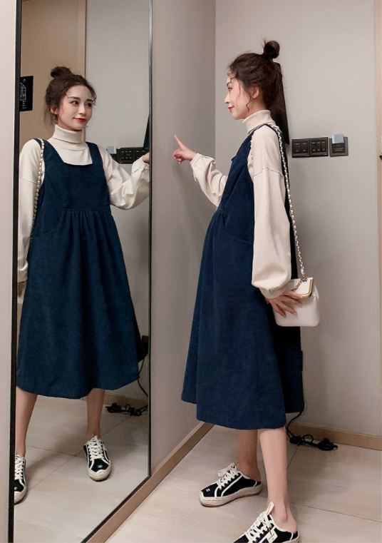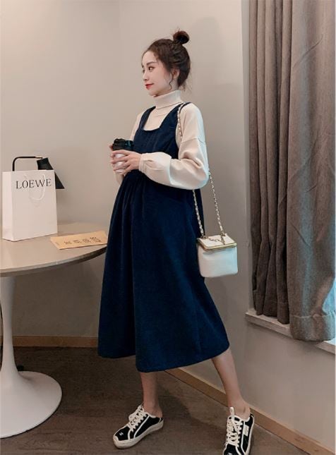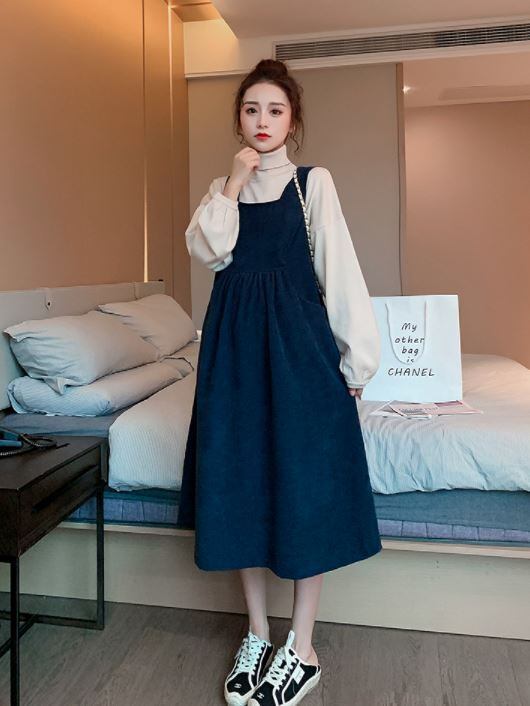 タートルネック&ジャンパースカートのマタニティツーピースです。