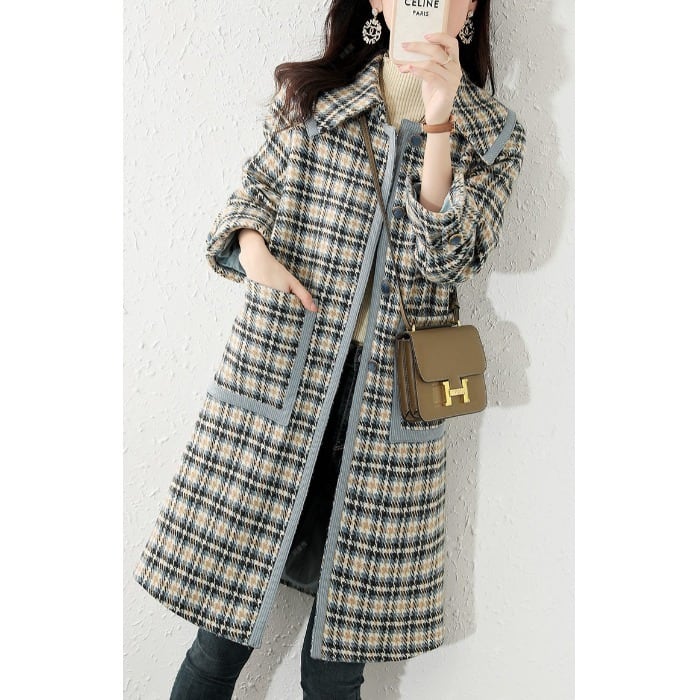 アウター コート 上着 ロング ロング丈 長袖 Vネック 襟付き かわいい 大人可愛い きれいめ シンプル おしゃれ お洒落 かっこいい レトロ 大人可愛い 大人女子 こなれ感 ラフ キュート ガーリー 個性的 主役級 存在感 チェック柄 秋 冬 10代 20代 30代 40代 レディース 女性用 ママ 女の子 着回し 普段使い 韓国 韓国系 ファッション コーデ スタイル 楽ちん 暖かい 防寒 モテ 新作 定番 送料無料 トレンド 流行 インスタ映え インポート 海外 人気 大人カジュアル 合わせやすい