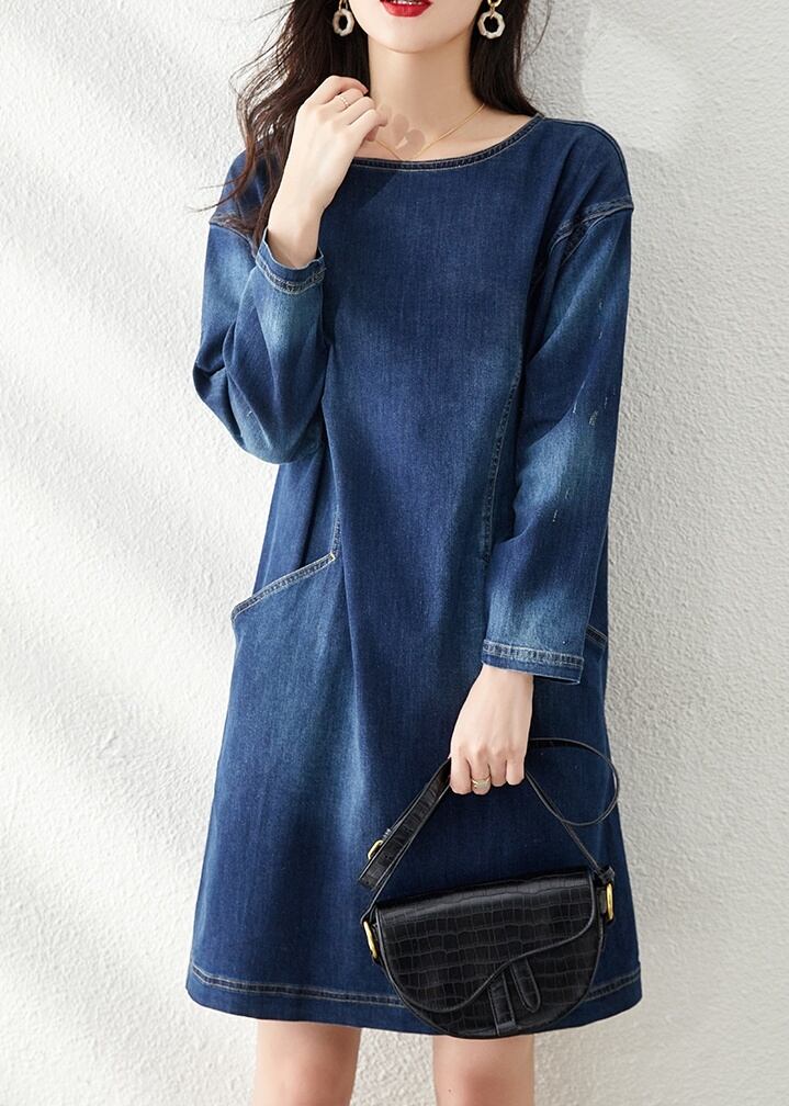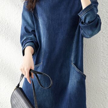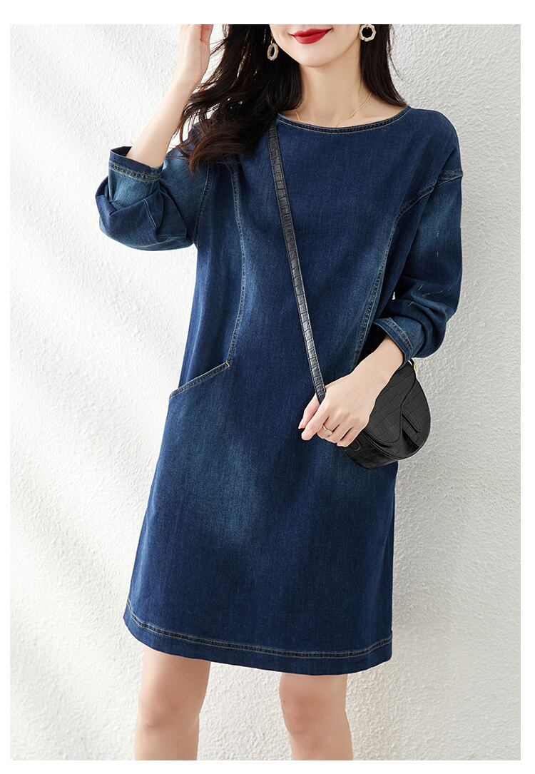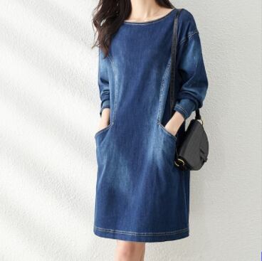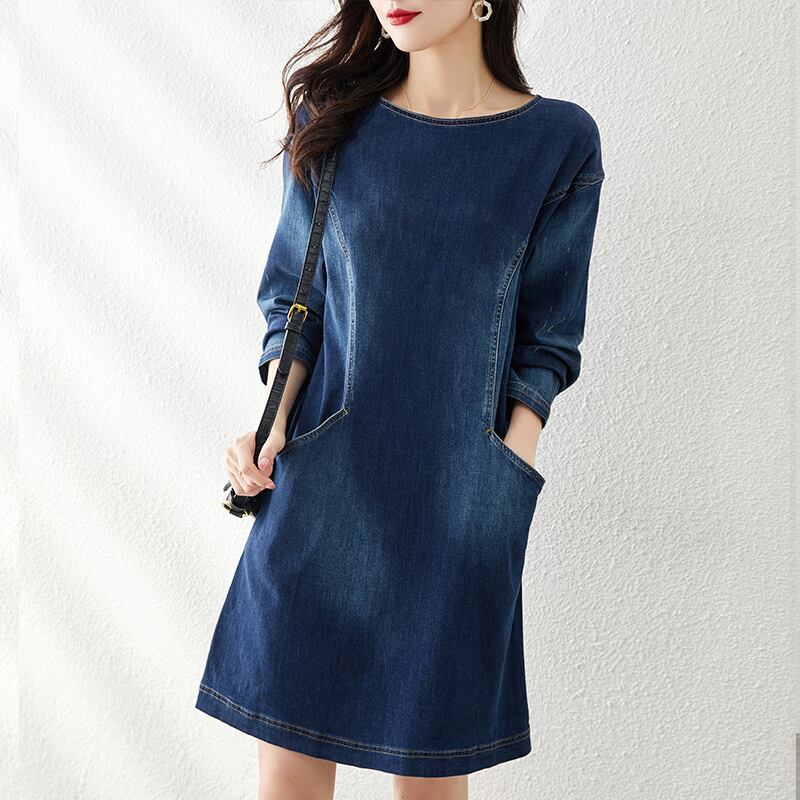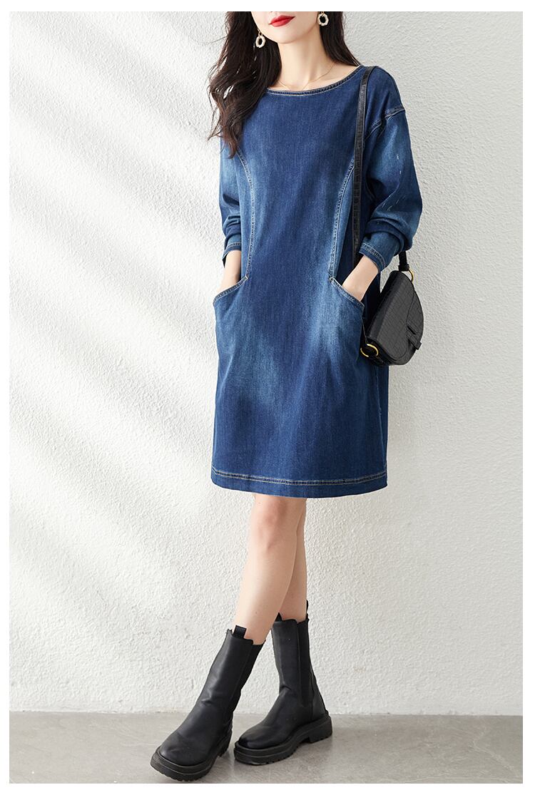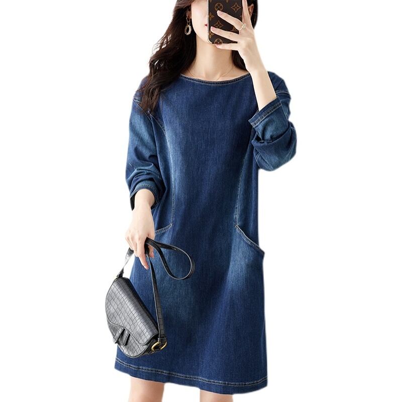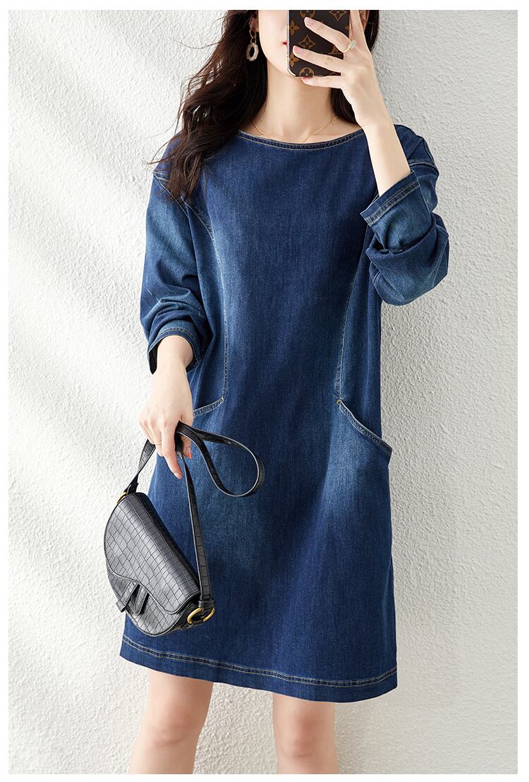 デニムワンピース ワンピース ミニ ミニ丈 膝上 長袖 ラウンドネック Iライン デニム ブルーデニム かわいい 大人可愛い シンプル おしゃれ お洒落 かっこいい レトロ 大人可愛い 大人女子 ラフ キュート ガーリー 個性的 クール モード系 主役級 存在感 無地 春 秋 冬 10代 20代 30代 レディース 女性用 ママ 女の子 デート お出かけ 女子会 お泊まり 休日 着回し 普段使い 韓国 韓国系 オルチャン ファッション コーデ スタイル 楽ちん モテ 体系カバー 美脚 脚長 新作 海外