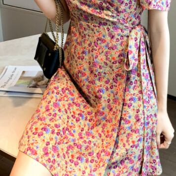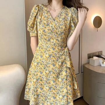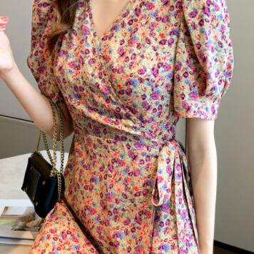 カシュクールワンピース ワンピース ミニ ミニ丈 膝上 半袖 パフスリーブ Vネック フレア タイト 細身 ウエストマーク ウエストリボン ハイウエスト かわいい 大人可愛い きれいめ 上品 おしゃれ お洒落 レトロ 大人可愛い 大人女子 ラブリー キュート ガーリー 個性的 セクシー エレガント 主役級 存在感 柄 花柄 小花柄 フラワー 春 夏 10代 20代 30代 女性用 ママ 学生 デート お出かけ 女子会 お泊まり 休日 着回し 韓国 韓国系 ファッション コーデ スタイル モテ 新作 定番