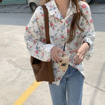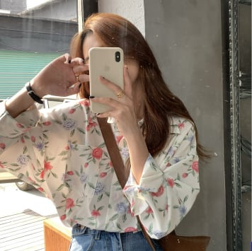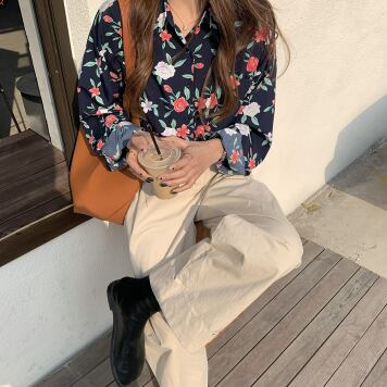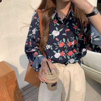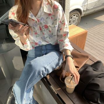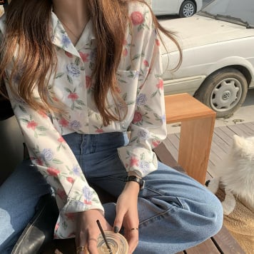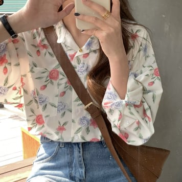 トップス シャツ 長袖 Vネック 襟付き かわいい 大人可愛い シンプル 大人 おしゃれ お洒落 レトロ 大人可愛い 大人女子 こなれ感 ラフ キュート ガーリー 個性的 主役級 存在感 柄 花柄 フラワー 春 秋 10代 20代 30代 レディース 女性用 ママ 女の子 学生 デート お出かけ 女子会 お泊まり 休日 着回し 普段使い 韓国 韓国系 ファッション コーデ スタイル 楽ちん モテ 新作 定番 送料無料 トレンド 流行 インスタ映え インポート 海外 人気 大人カジュアル 合わせやすい