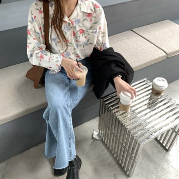 花柄がラフで可愛いシャツです。