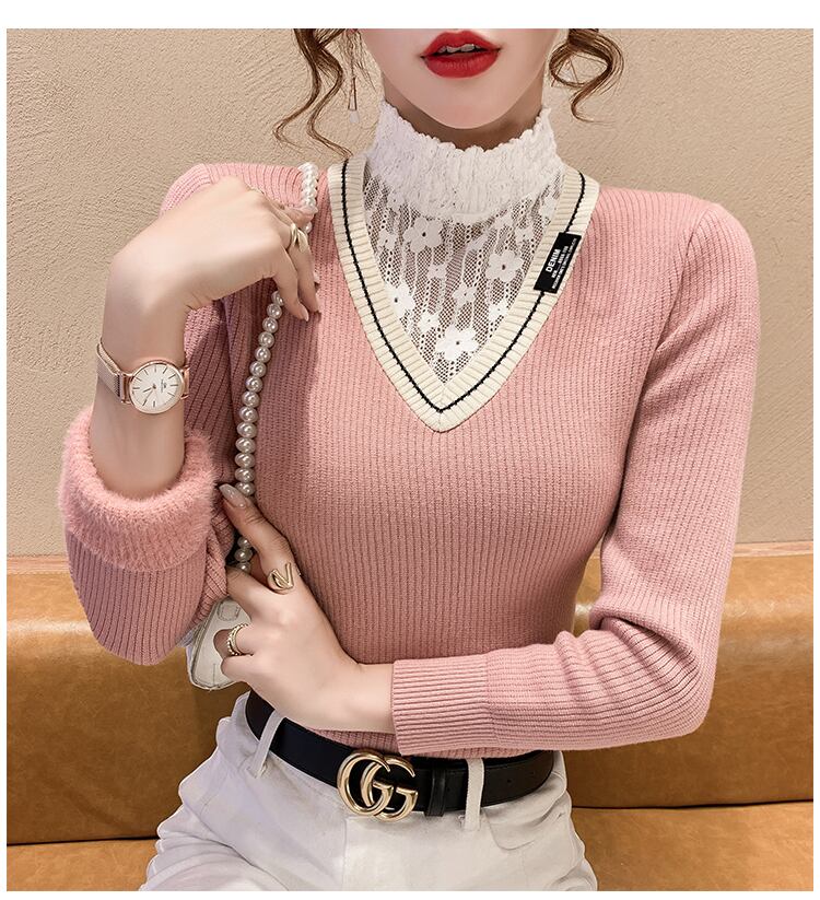 首元はレースのハーフネックです。