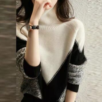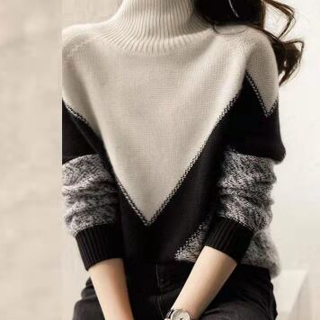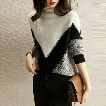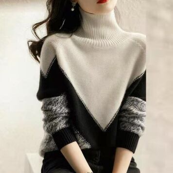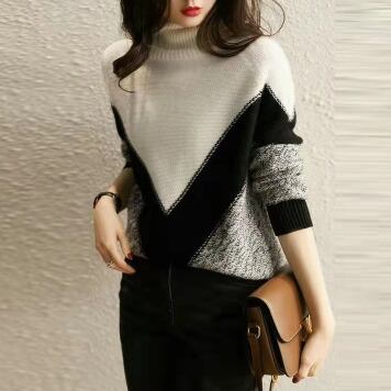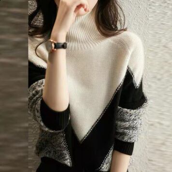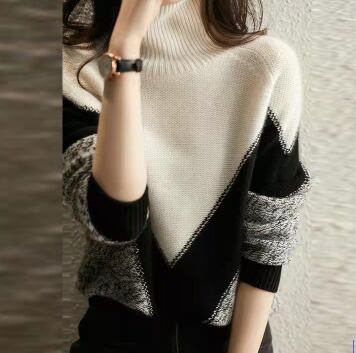 オーバーサイズ V字切り替え 杢調編み地 モノトーン配色 トップス プルオーバー ミディアム丈 長袖 タートルネック ハイネック 綿 ニット きれいめ シンプル カジュアル 大人 上品 おしゃれ お洒落 かっこいい 大人女子 こなれ感 メンズライク マニッシュ クール モダン 存在感 無地 春 秋 冬 レディース ママ 通勤 学生 通学 デート お出かけ 公園デビュー 休日 着回し 普段使い 韓国系 オルチャン コーデ スタイル S M L 大きめ ゆったり ゆる サイズ ブラック×ホワイト