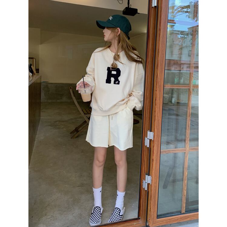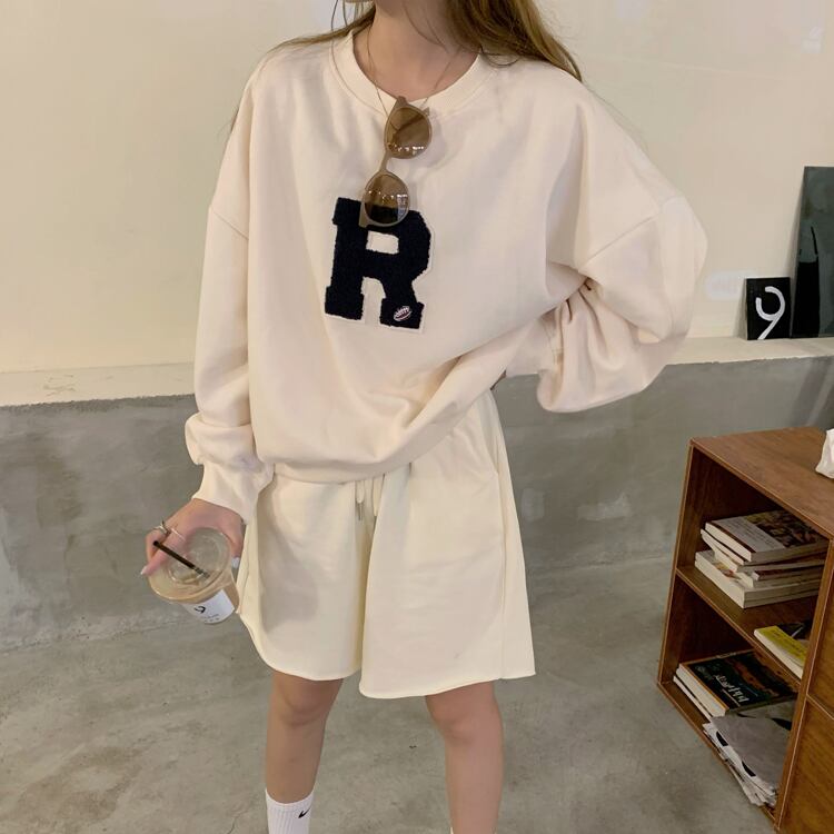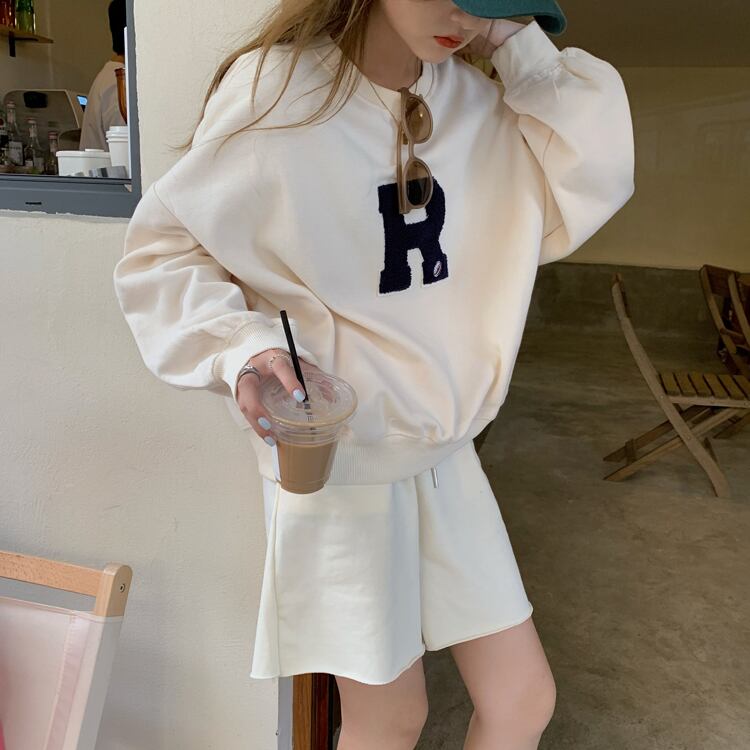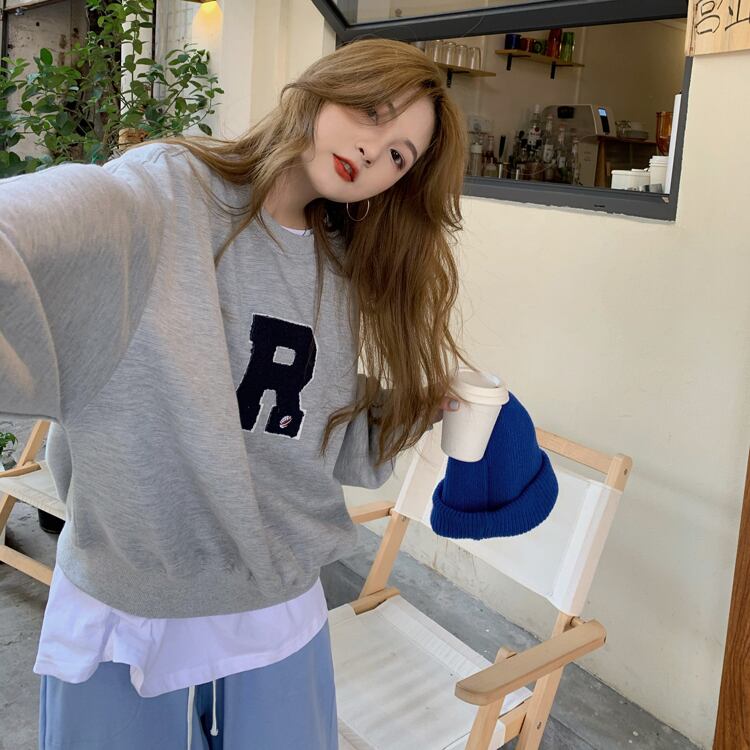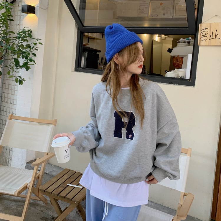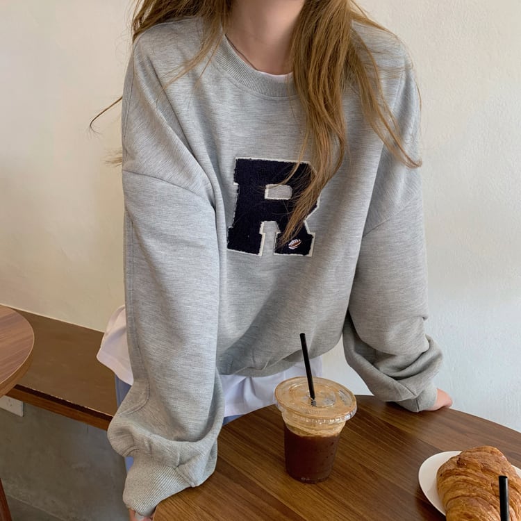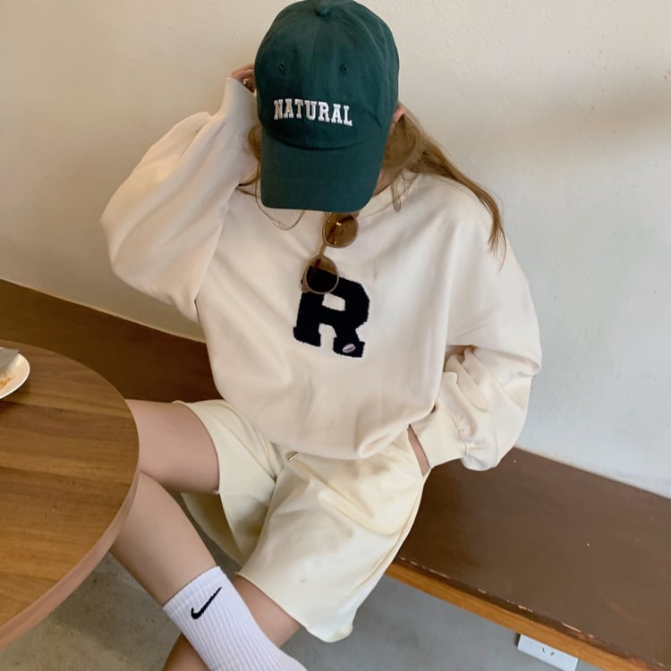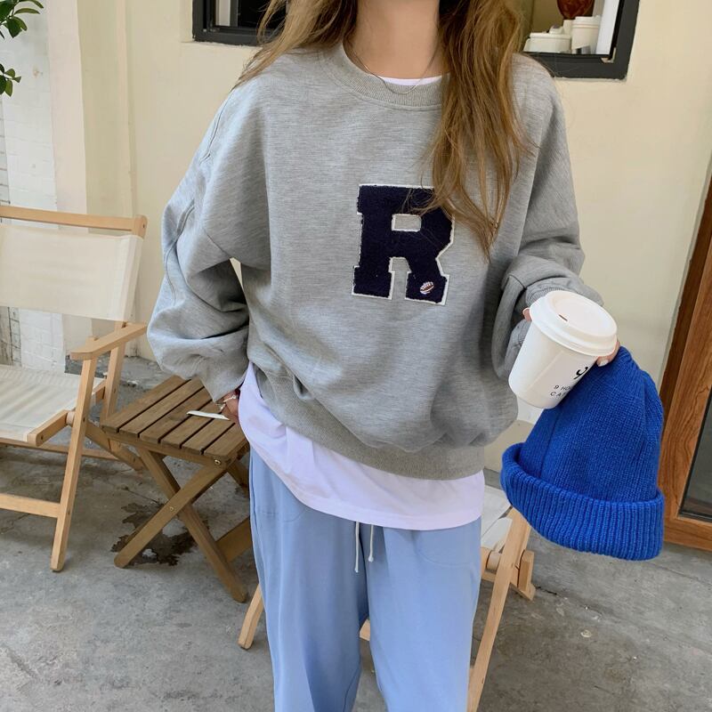 胸の「R」のロゴワッペンがポイントのカジュアルなスウェットトップス。