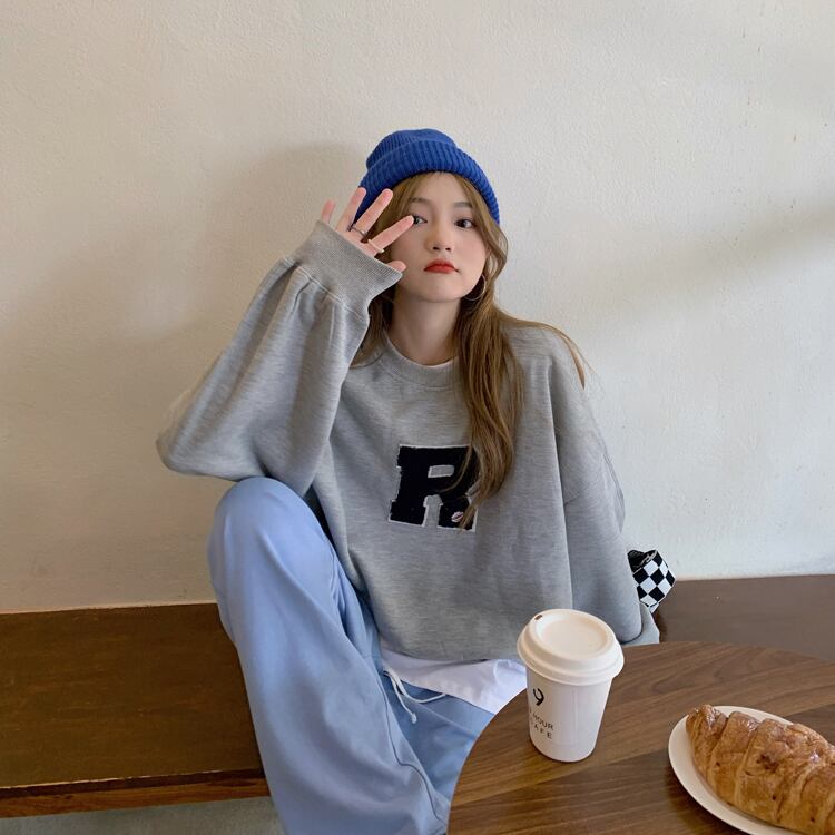 オーバーサイズ ビックシルエット アルファベット ロゴワッペン トップス プルオーバー トレーナー スウェット ミディアム丈 長袖 ドロップショルダー ラウンドネック シンプル カジュアル 大人 おしゃれ かっこいい 大人女子 こなれ感 メンズライク ボーイッシュ ルーズ 春 秋 冬 レディース 女性用 ママ 女の子 学生 通学 お出かけ 公園デビュー 女子会 休日 着回し 普段使い 重ね着 韓国系 オルチャン スタイル 楽ちん S M L XL 大きめ ゆったり ゆる サイズ グレー ベージュ