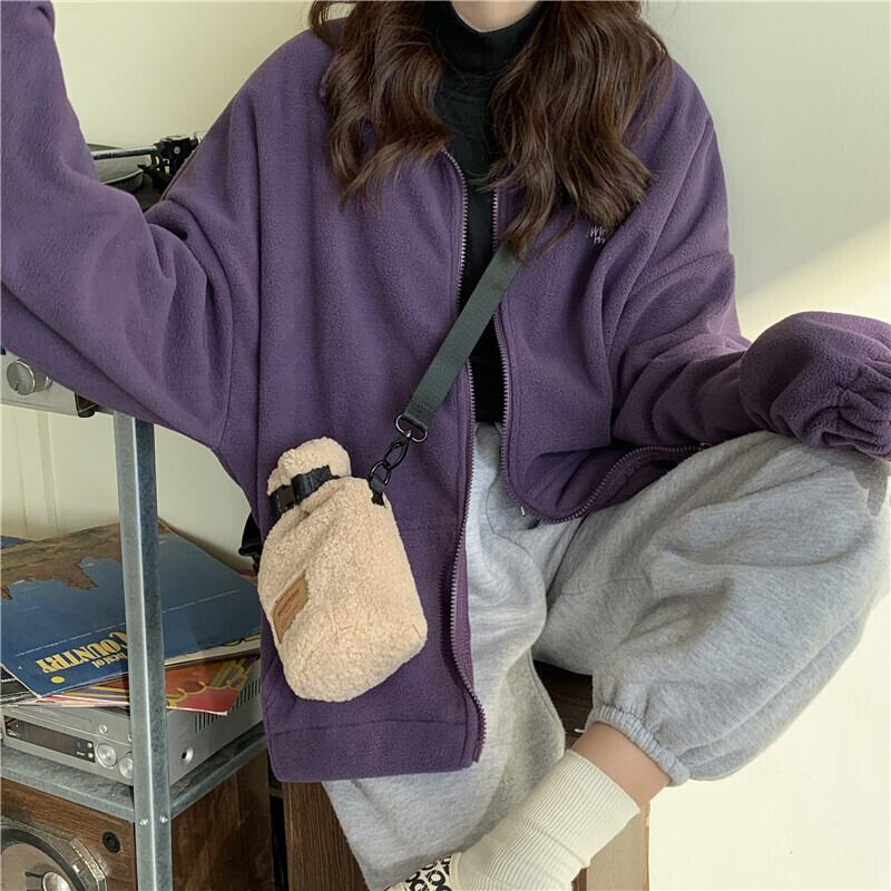 オーバーサイズ 左胸ロゴ 袖口&裾ゴム入り カンガルーポケット ジップアップ アウター ブルゾン ジャケット 上着 ミディアム丈 長袖 ドロップショルダー 萌袖 スタンドカラー ファスナー フリース シンプル カジュアル 大人女子 こなれ感 ラフ メンズライク ボーイッシュ 無地 春 秋 冬 男女兼用 ママ 学生 通学 公園デビュー 休日 アウトドア 普段使い 韓国系 スタイル 楽ちん 暖かい 防寒 体系カバー M L XL 2XL 大きめ ゆる サイズ グリーン パープル グレー オフホワイト