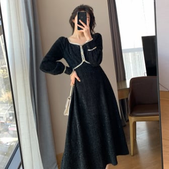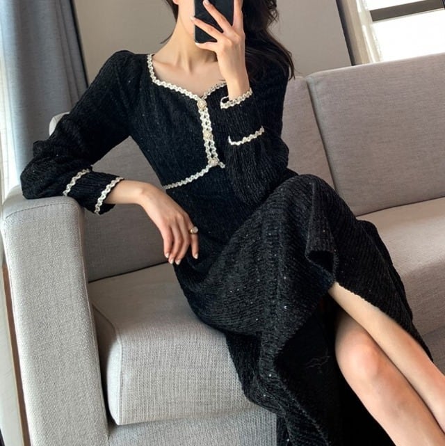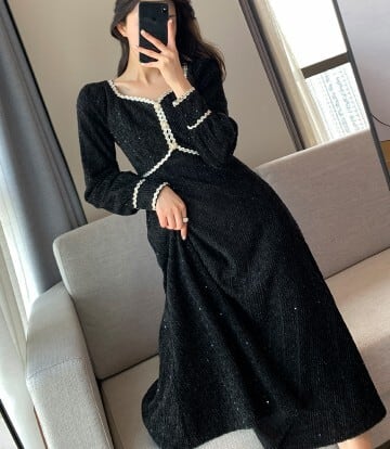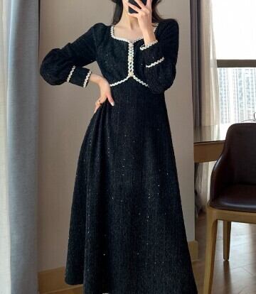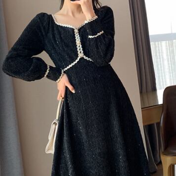ワンピースドレス ワンピ ドレス ナイトドレス パーティードレス ブラック M L XL 2XL 3XL 4XL 大人クールデザイン パフスリーブ ステッチドレス パーティー イベント 二次会 発表会 披露宴 お呼ばれ かっこいい ラグジュアリー キラキラ スパンコール シック モダン 海外ファッション モテ 主役級 個性的 シンプル プチプラ ランキング キュート お勧め 大人女子 プラスサイズ サイズ豊富 女性 黒長袖ドレス フレンチデザイン レトロデザイン トレンドワンピース ワンピ秋冬トレンド
