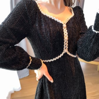※画像はイメージです。実物とは異なる場合がございますので、ご了承ください。着用時の注意点として、スパンコールは引っ掛けやすいのでお気をつけください。