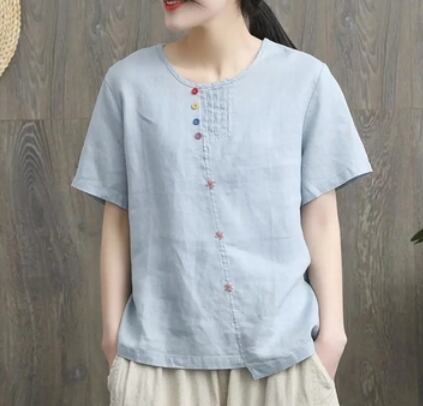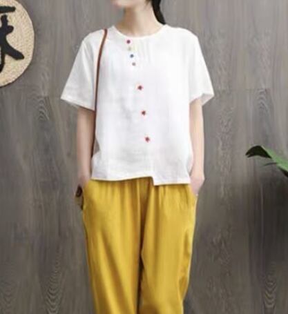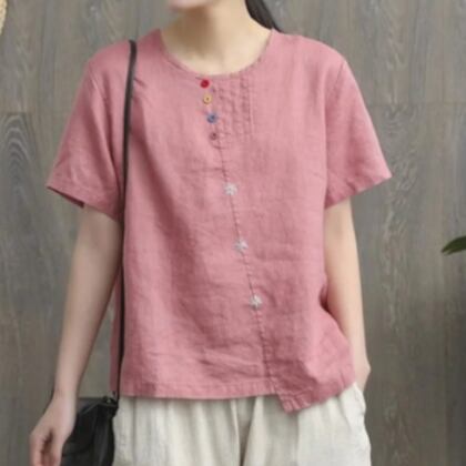 カラフルなボタンがポイントの半袖Tシャツ。春夏にぴったりなラウンドネックと爽やかなカラーバリエーションで、カジュアルにもきれいめにも使えます。シンプルなデザインながら、トップスとしてはもちろん、シャツとしてもアレンジできるマルチなアイテムです。色違いで揃えても楽しく、ガーリーなキュートなスタイルもおすすめ。おしゃれな女性はもちろん、学生さんやママさんまで、幅広い年代の方々から愛される一枚です。サイズもMから2XLまで展開しているので、あなたにぴったりのサイズが見つかるはず!この春夏のオシャレの主役にぜひ取り入れてください。