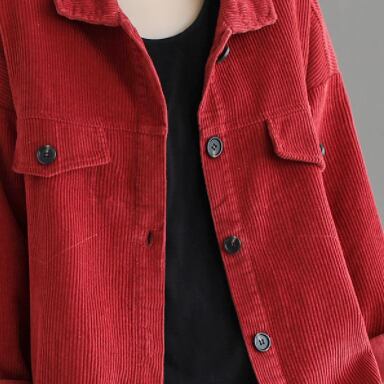コーデュロイジャケットは、シンプルだけど個性的なデザインで大人女子にもおすすめのジャケットです。シンプルで上品な黒や赤、またはシーズンムードを盛り上げるレトロなレッド、ブラックの4色をご用意しました。レギュラー丈で袖ありの長袖、襟付き、ストレートなシングルブレストデザインで、どんなコーディネートにも合わせやすく、主役級の存在感を放ちます。