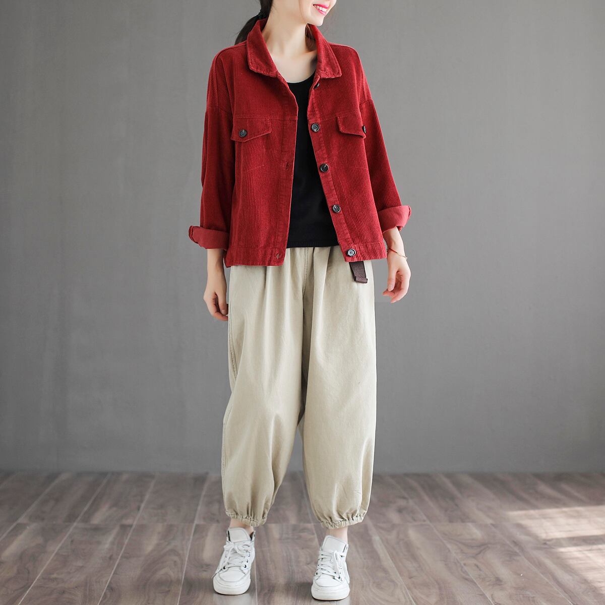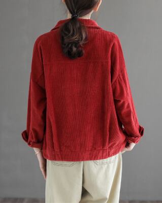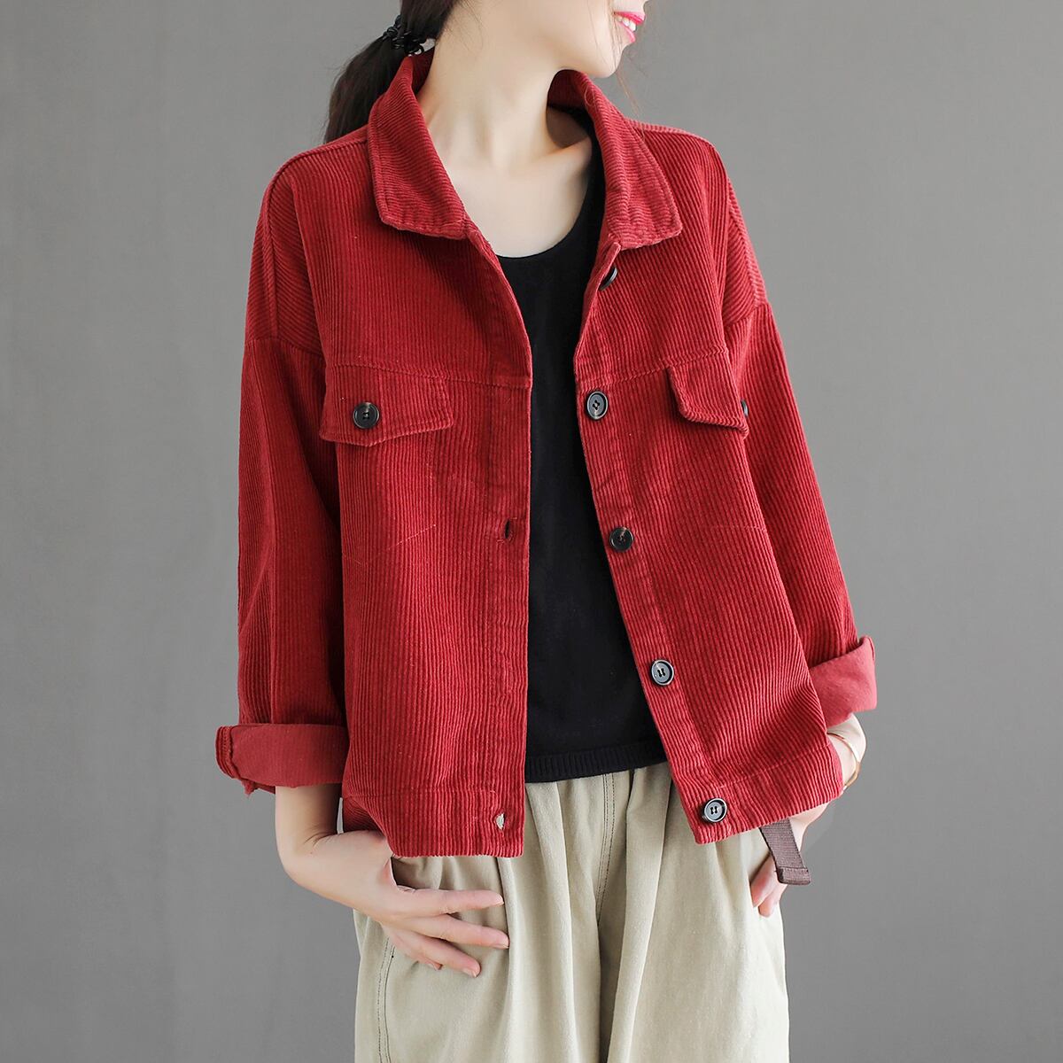 コーデュロイジャケット トップス シンプル ブラック 黒 レッド 赤 レギュラー丈 袖あり 長袖 襟付き ストレート シングルブレスト ボタン ポケット 綿 コットン 大人女子 大人 上品 おしゃれ きれいめ シンプル デイリーウェア レトロ レトロ風 こなれ感 個性的 デザイン 主役級 存在感 無地 春 スプリング 秋 オータム 20代 10代 30代 40代 レディース 女性用 学生 学校 通学 着回し 普段使い M L XL 大きいサイズ 2XL 3XL 大人カラー
