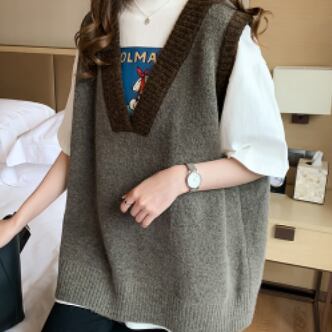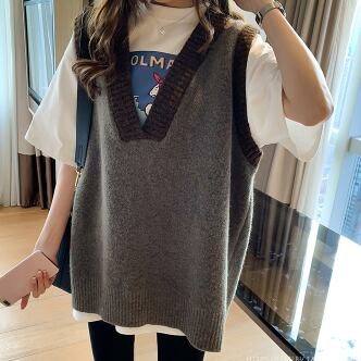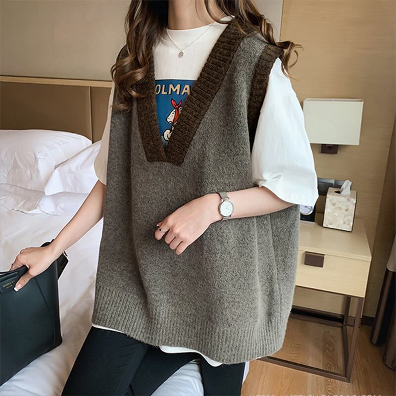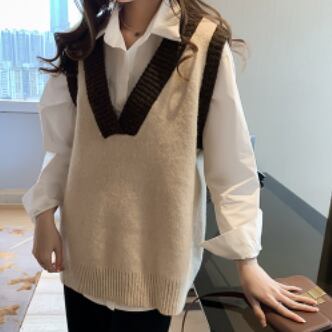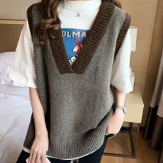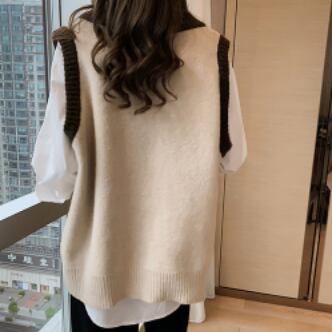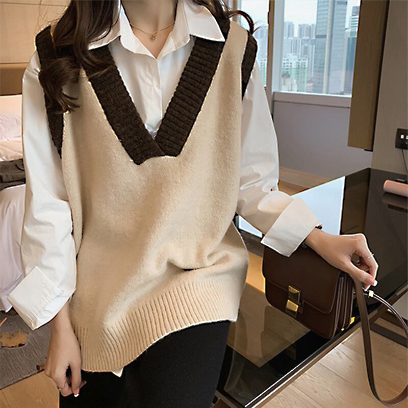 バイカラーベスト トップス ニット シンプル グレー 灰色 アプリコット レギュラー丈 袖なし ノースリーブ Vネック ストレート ワイド 大人女子 大人 上品 おしゃれ デイリーウェア レトロ レトロ風 こなれ感 ルーズ シルエット ラフ 個性的 デザイン 主役級 存在感 無地 配色 春 スプリング 秋 オータム 20代 10代 30代 レディース 女性用 学生 学校 通学 休日 おうち らくちん 着回し 普段使い 重ね着 レイヤード M L XL 大きいサイズ 2XL