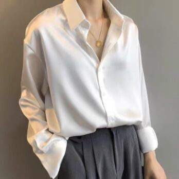 サテンシャツ トップス シャツ 長袖 襟付き 前開き 薄手 サテン 光沢 かわいい 大人可愛い きれいめ シンプル おしゃれ お洒落 大人可愛い 大人女子 キュート ガーリー 個性的 エレガント 主役級 存在感 フォーマル とろみ感 無地 春 秋 10代 20代 30代 40代 レディース 女性用 ママ 女の子 デート お出かけ 女子会 お泊まり 休日 着回し 重ね着 韓国 韓国系 ファッション コーデ スタイル モテ 新作 定番 送料無料 トレンド 流行 インスタ映え 大きい 大きめ インポート 海外
