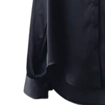 サテン生地の光沢感が魅力的な襟付きシャツです。トレンドの大人可愛いスタイルから、エレガントなフォーマルシーンまで、幅広いコーディネートに対応できます。程よいとろみ感と軽量な素材が、春や秋にぴったりです。袖口にはボタンを付けたり、ベルトでウエストマークするなど、アレンジ次第で楽しめる幅広いデザインも魅力です。
