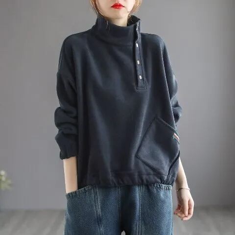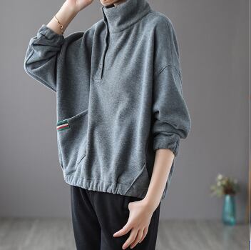 裏起毛プルオーバー トップス トレーナー カジュアル ブラック 黒 グレー 灰色 オレンジ レギュラー丈 袖あり 長袖 タートルネック ワイド ポケット 綿 コットン 大人女子 大人 上品 おしゃれ デイリーウェア レトロ レトロ風 こなれ感 個性的 デザイン 主役級 存在感 無地 秋 オータム 冬 ウインター 20代 10代 レディース 女性用 学生 学校 通学 着回し 普段使い ファッション コーデ 暖かい 防寒 M L XL 大きいサイズ 2XL 3XL