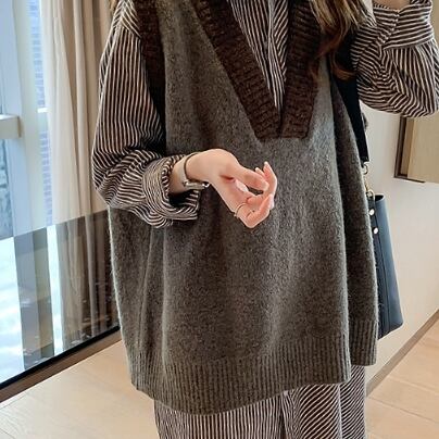 ニットベスト トップス ベスト 袖なし ノースリーブ Vネック ニット バイカラー かわいい 大人可愛い シンプル カジュアル おしゃれ お洒落 大人可愛い 大人女子 こなれ感 ラフ キュート ガーリー 個性的 主役級 存在感 無地 春 秋 冬 10代 20代 30代 レディース 女性用 ママ 女の子 着回し 普段使い 重ね着 韓国 韓国系 ファッション コーデ スタイル 楽ちん 暖かい 防寒 モテ 新作 定番 送料無料 トレンド 流行 インスタ映え 大きい 大きめ ビッグサイズ ゆったり ゆる 海外