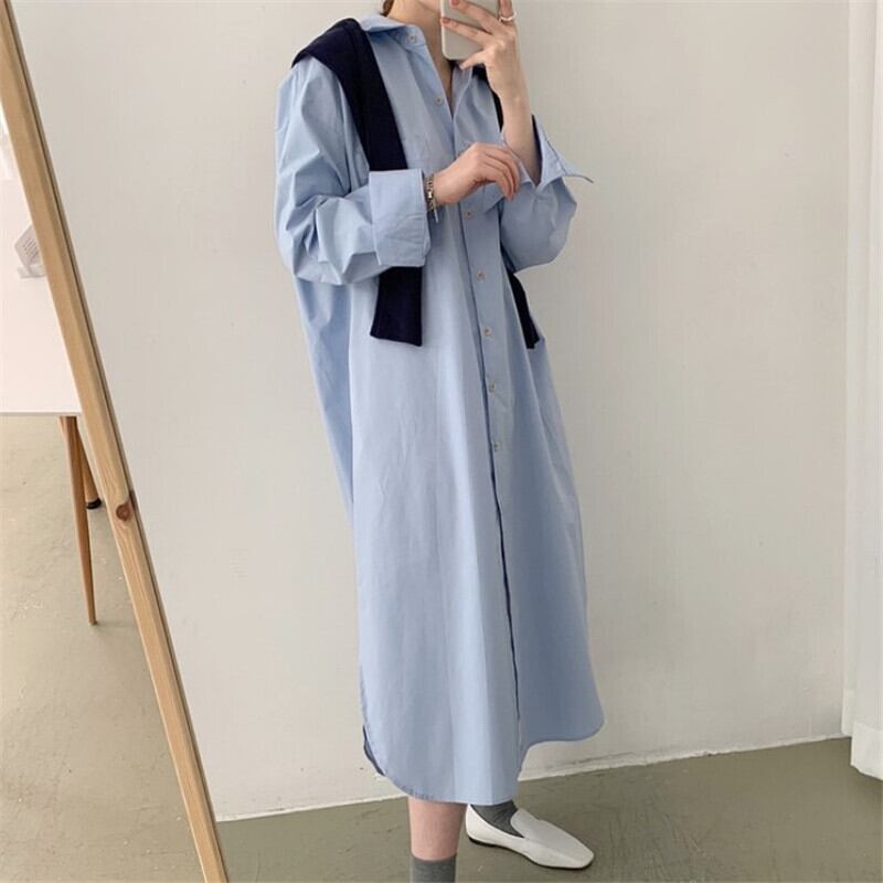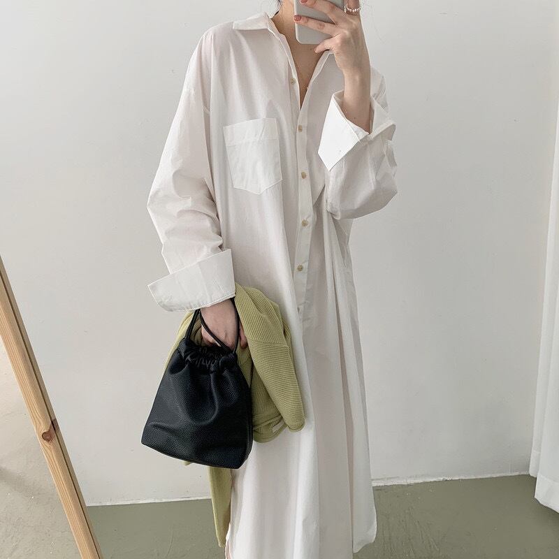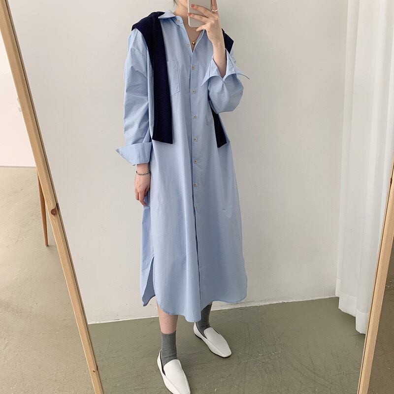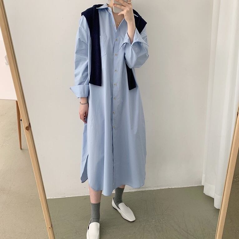 シャツワンピース ワンピース シャツ ロング ロング丈 長袖 襟付き かわいい 大人可愛い シンプル カジュアル おしゃれ お洒落 大人可愛い 大人女子 マニッシュ キュート ガーリー モード系 主役級 存在感 無地 春 秋 10代 20代 30代 レディース 女性用 ママ マタニティ 女の子 学生 通学 デート お出かけ 女子会 お泊まり 休日 着回し 普段使い 重ね着 韓国 韓国系 ファッション コーデ スタイル 楽ちん モテ 新作 定番 送料無料 トレンド 流行 インスタ映え 大きい 大きめ 海外