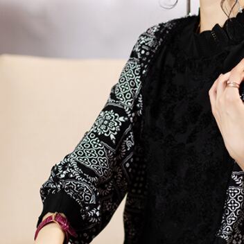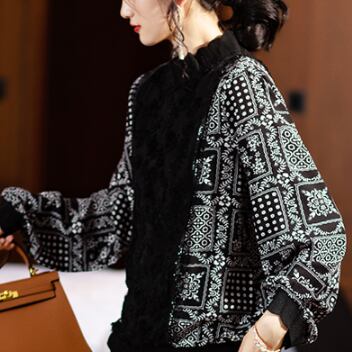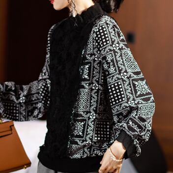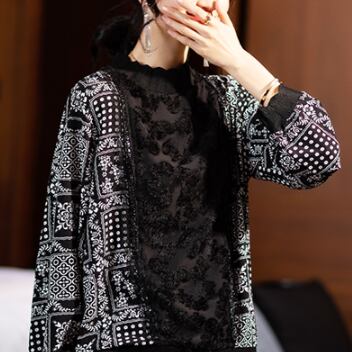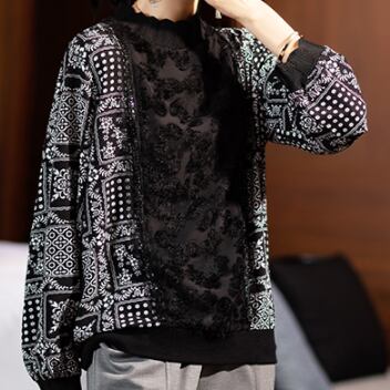 このハイネックプルオーバーは、トップス・シャツ・ブラウスとしても着用可能で、ブラックのレース柄が大人女子にぴったり。ワイドなシルエットにより、こなれた雰囲気を演出します。レトロ風の花柄デザインも秀逸。春らしい印象を与えます。オフィスやビジネス、OLの通勤にも最適です。