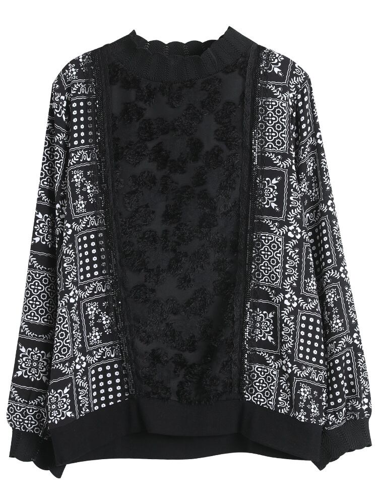 ハイネックプルオーバー トップス シャツ ブラウス ブラック 黒 レギュラー丈 袖あり 長袖 ハイネック ストレート ワイド レース 大人女子 大人 上品 おしゃれ エレガント デイリーウェア レトロ レトロ風 こなれ感 ルーズ シルエット ラフ 個性的 デザイン 主役級 存在感 柄 花柄 フラワー 春 スプリング 20代 30代 レディース 女性用 オフィス ビジネス OL 通勤 学生 学校 通学 着回し 普段使い L XL 2XL 大きいサイズ 3XL 4XL 5XL