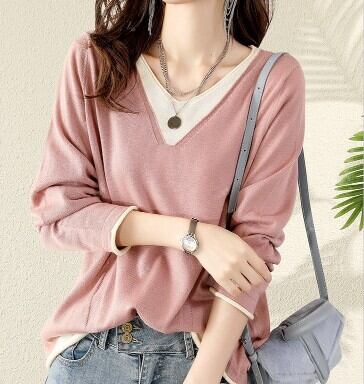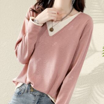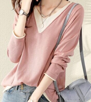 重ね着風トップス トップス カットソー ニットソー 長袖 Vネック かわいい 大人可愛い シンプル カジュアル おしゃれ お洒落 大人可愛い 大人女子 キュート ガーリー 主役級 無地 春 秋 冬 10代 20代 30代 40代 50代 女性用 ママ 女の子 オフィス OL 通勤 学生 デート お出かけ 女子会 お泊まり 休日 着回し 普段使い 韓国 韓国系 ファッション コーデ スタイル モテ 新作 定番 送料無料 トレンド 流行 インポート 海外 人気 大人カジュアル コスパ フェミニン 女子力