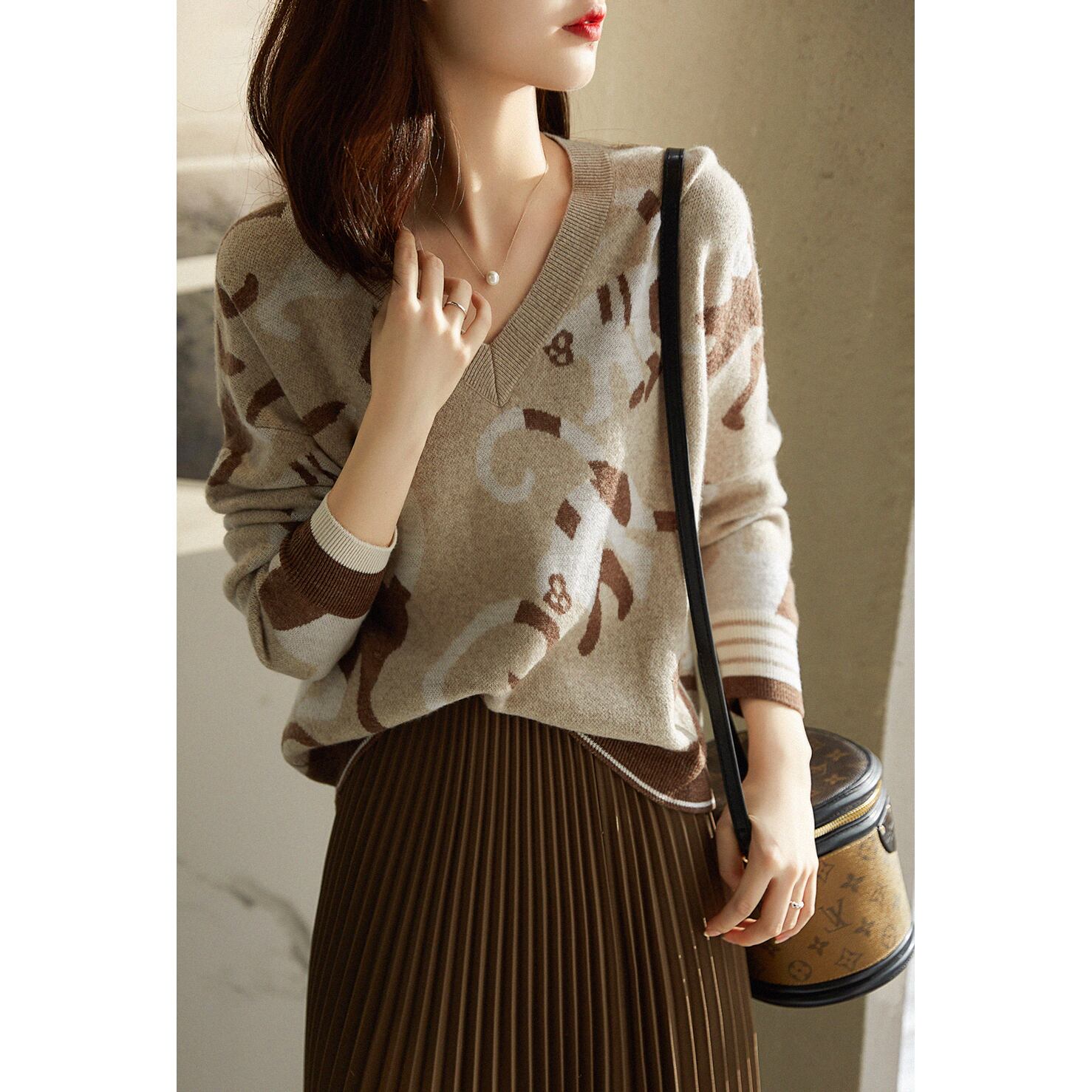 トップス セーター 長袖 Vネック かわいい 大人可愛い 大人 上品 おしゃれ お洒落 大人可愛い 大人女子 こなれ感 キュート ガーリー 個性的 主役級 存在感 柄 秋 冬 10代 20代 30代 40代 レディース 女性用 ママ 女の子 学生 デート お出かけ 女子会 お泊まり 休日 着回し 普段使い 韓国 韓国系 ファッション コーデ スタイル 暖かい 防寒 モテ 新作 定番 送料無料 トレンド 流行 インスタ映え バイカラー インポート 海外 人気 大人カジュアル 合わせやすい 女子力 リブ