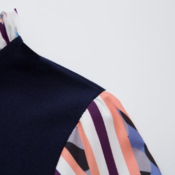ドッキングさせた生地が、着るだけで存在感を放ち、主役級のフォーマルスタイルにもぴったりな逸品。柄としては大きめの花柄を選び、季節感も出すことができます。