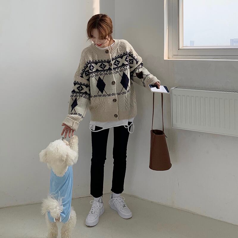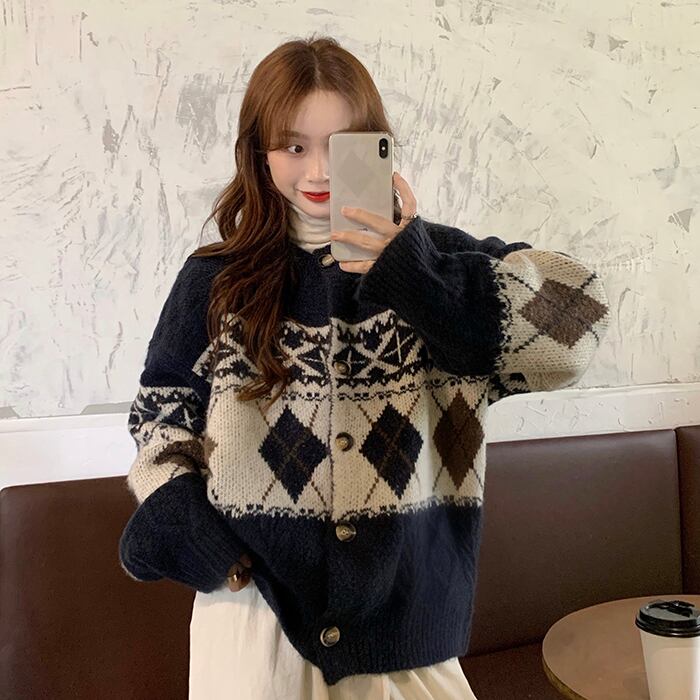 レトロパターンニットカーディガン トップス カーディガン ミディアム丈 ラウンドネック ワイド イージー ニット かわいい 大人可愛い カジュアル 大人 上品 おしゃれ お洒落 かっこいい レトロ 大人女子 こなれ感 ラフ クール モダン 主役級 秋 冬 10代 20代 30代 レディース 女性用 ママ OL 通勤 学生 通学 デート お出かけ 公園デビュー 休日 アウトドア リゾート 旅行 着回し 普段使い ファッション コーデ スタイル 体系カバー 新作 トレンド 流行 インスタ映え イメチェン